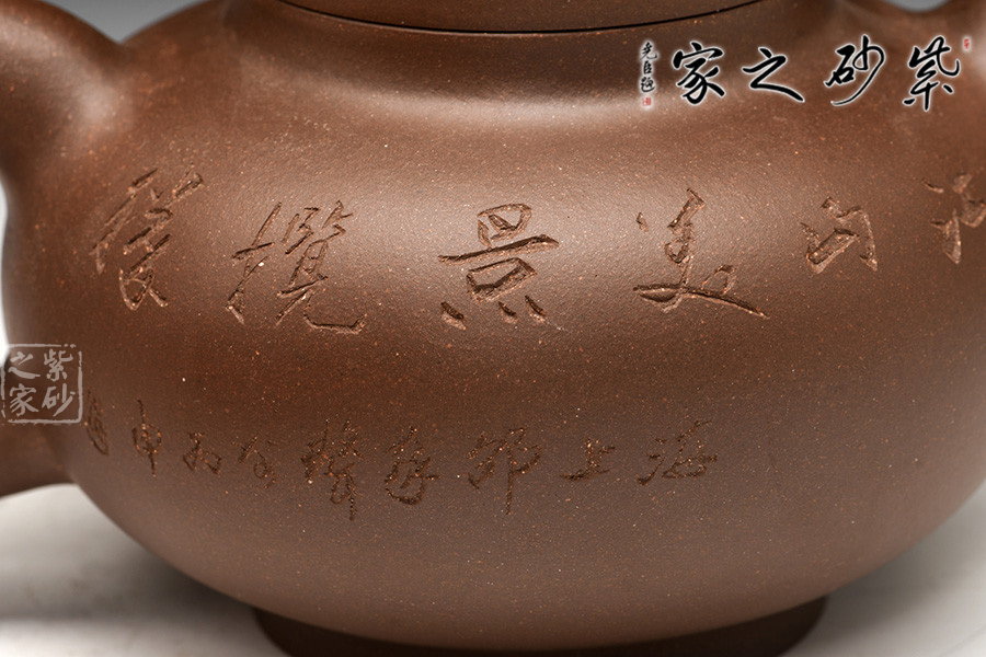 光貨離不開裝飾。俗話說“壺隨字貴,字隨壺傳”:光壺不刻字,就是一把光壺;壺上面刻了大師、名人的字,一把壺的含金量就高了,收藏價值就更高,升值潛力就更大。王福君與中國工藝美術(shù)大師譚泉海合作最多,其次是徐安碧、鮑志強(qiáng)、毛國強(qiáng)(均為中國工藝美術(shù)大師、中國陶瓷藝術(shù)大師)。