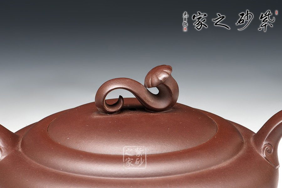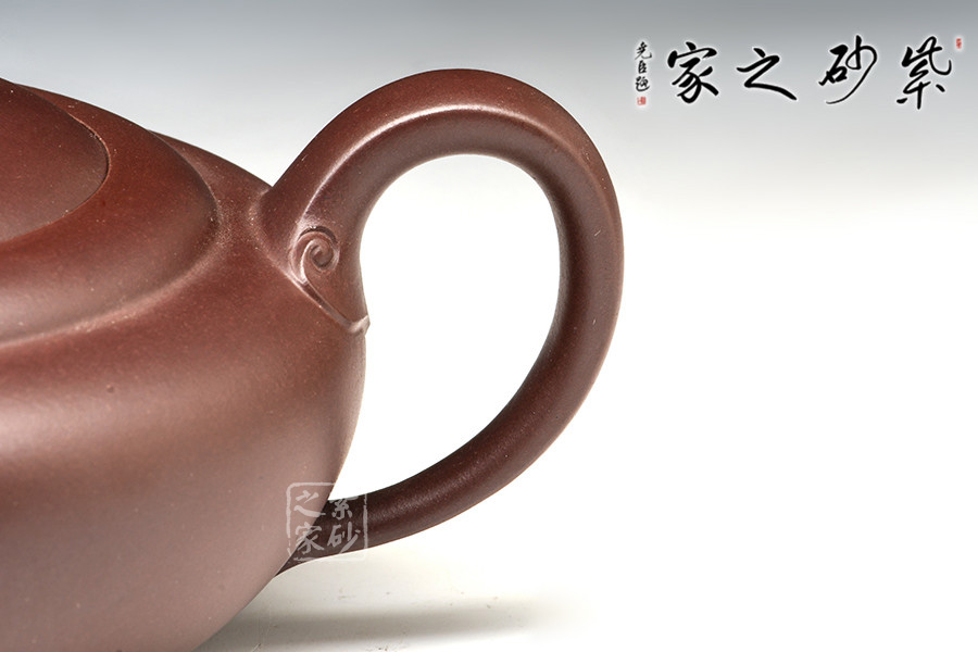 此“稱心如意”壺如其名,神韻華貴、氣質(zhì)典雅、形態(tài)優(yōu)美。高、低、肥、瘦、 剛、柔的各種姿態(tài)貫通一氣,如意鈕形態(tài)優(yōu)美,嘴把皆裝飾如意紋,寓意美好,吉祥如意,實(shí)乃佳作。