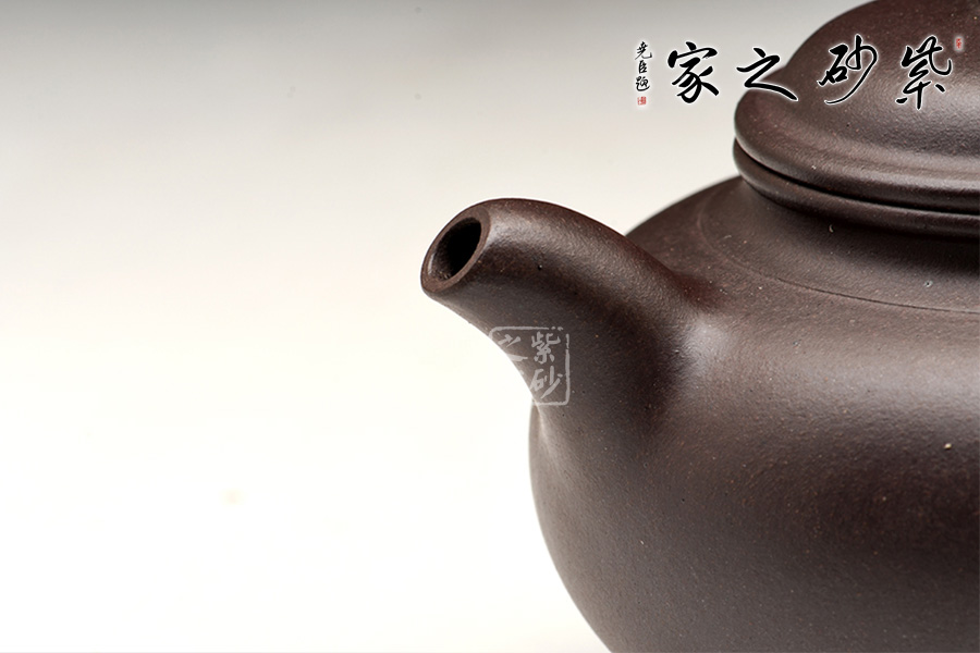整器式度端莊,風(fēng)格雅致,隱隱然有古風(fēng)韻,堪稱佳品。制壺賞壺,到了極致就要看其氣度,觀其神韻,此作特點正是如此,風(fēng)格古樸典雅,曲線強勁有力,渾厚端正,比例恰當(dāng),珠圓玉潤。