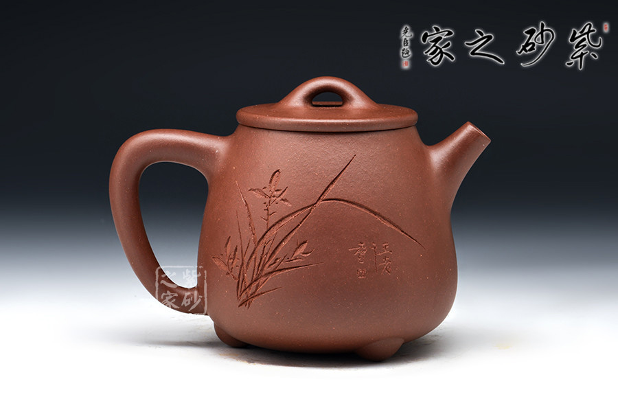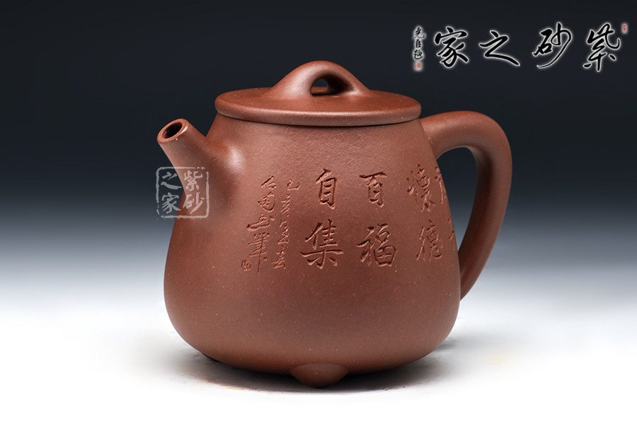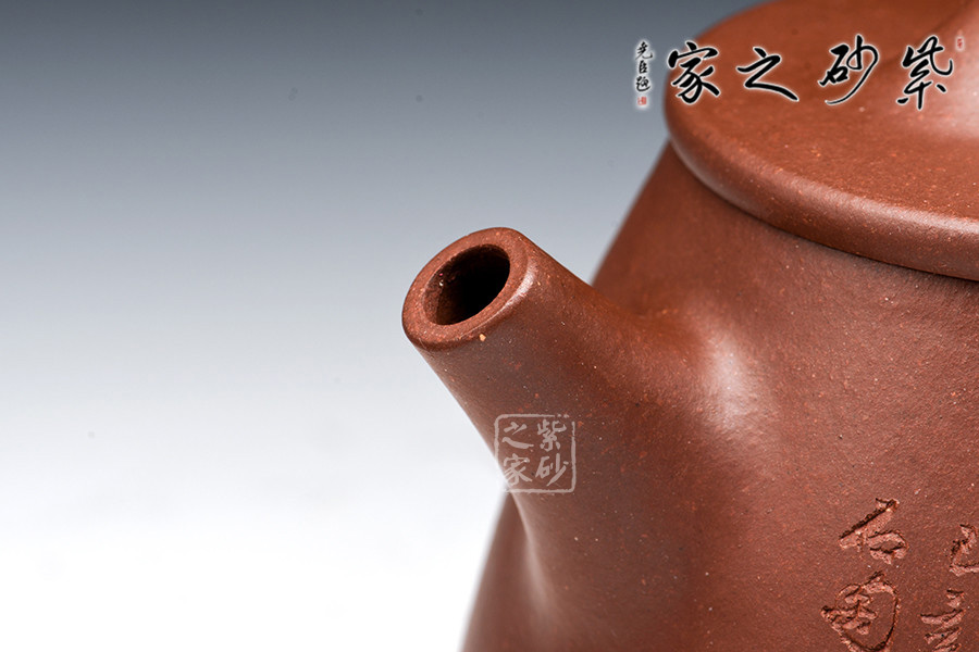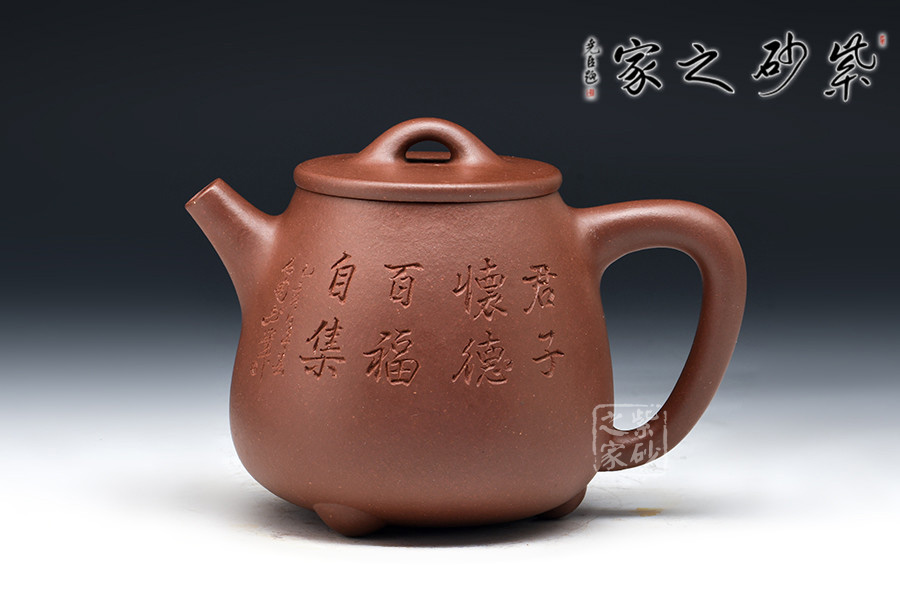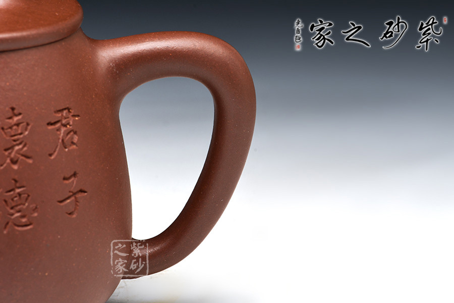 作品線條流暢,飽滿圓潤的壺身,盡顯剛中有柔,和順有力。平蓋,壓口嚴密,橋梁鈕暗接與壺蓋和諧統(tǒng)一。壺嘴短直暗接的處理,剛勁有力,圈把上渾下細,彰顯曲線柔美之感。三乳足臥底,神韻自然,壺身刻繪,風(fēng)度大氣,回味無窮。
