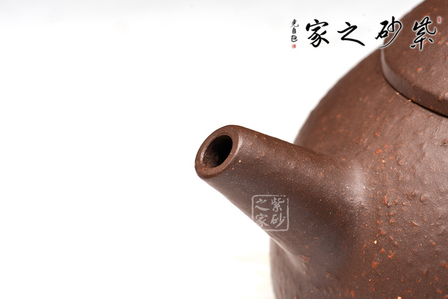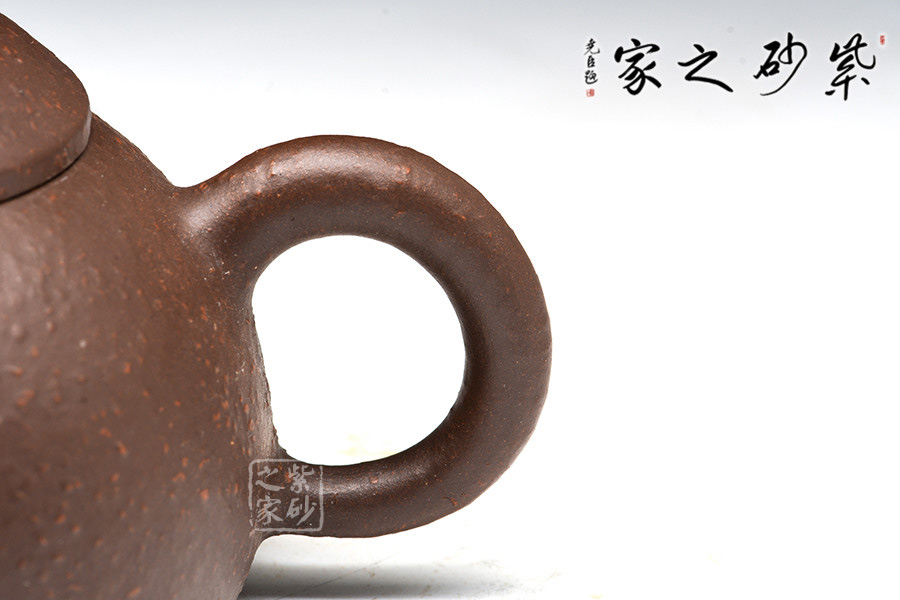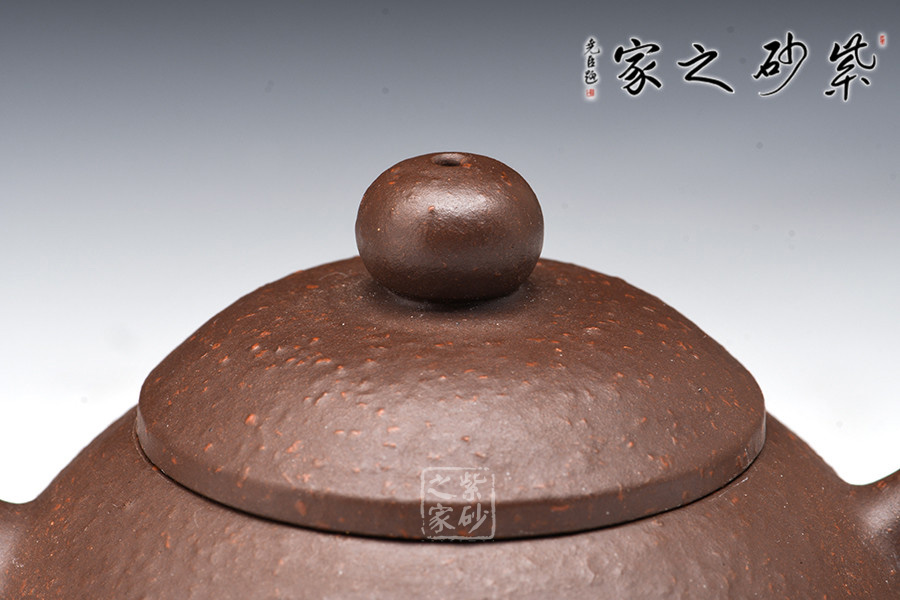 紫朱泥泥胎,撫之表面顆粒浮起,整體風(fēng)格古意盎然,視覺上穩(wěn)重大度,在質(zhì)樸中見深厚。