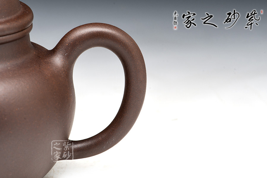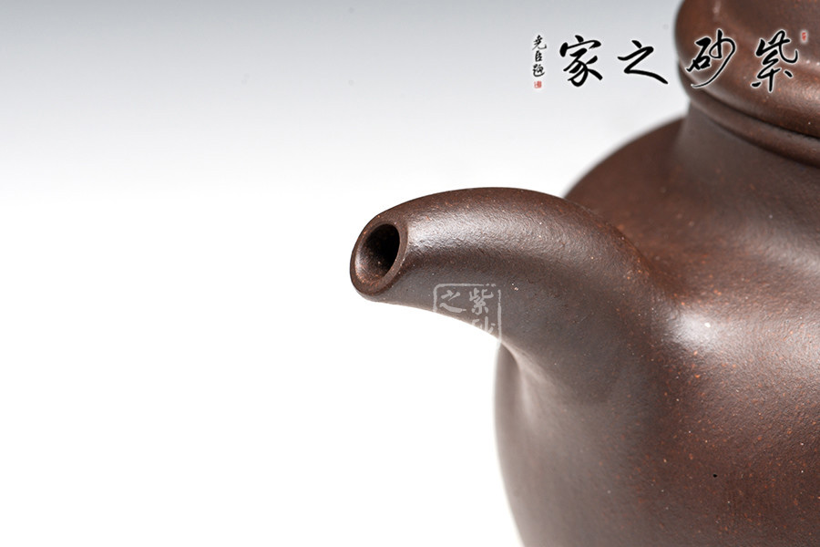 壺中最具特色的一款經(jīng)典紫砂壺型之一,壺身是一個(gè)大球,壺流一彎半,其口小根大,壺蓋是半個(gè)球,壺鈕是一個(gè)圓球,整體細(xì)細(xì)曲解無不取之于球。