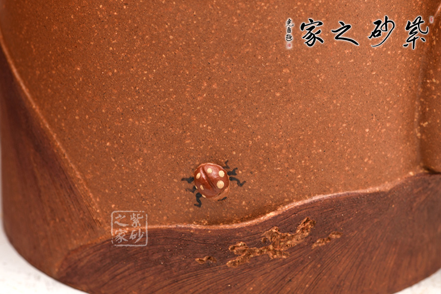 這款壺的底部采用堆砌的手法,其上還塑有一逼真小巧的瓢蟲,以靜景作動景,如臨其境。