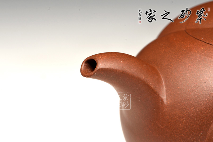 此作造型美觀大方,線條流暢,繼承傳統(tǒng)并勇于大膽創(chuàng)新,筋紋的造型不流于簡單,從壺鈕至壺蓋、壺身采用曲線形的筋紋形式,更富于流動感和線條性。