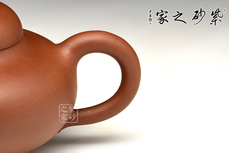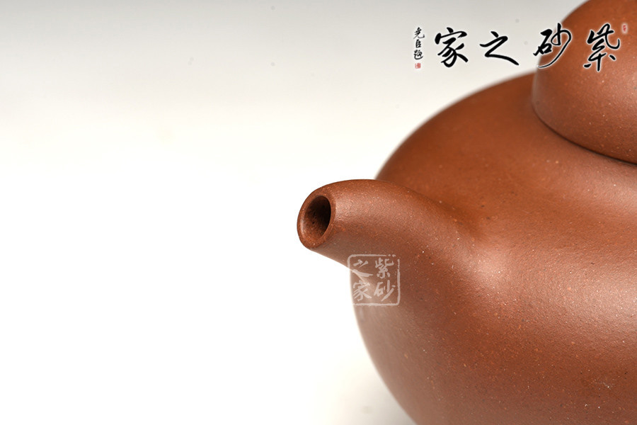 壺身形體飽滿,渾圓如珠,光滑細(xì)致,壺嘴、壺把、壺鈕與壺身搭配協(xié)調(diào),比例勻稱(chēng),壺嘴出水有力,壺把力度感強(qiáng),壺蓋設(shè)計(jì)豐腴,口蓋嚴(yán)密,各部銜接不見(jiàn)痕跡,渾然一體,流暢的線條強(qiáng)化了律動(dòng)的視覺(jué)效果。