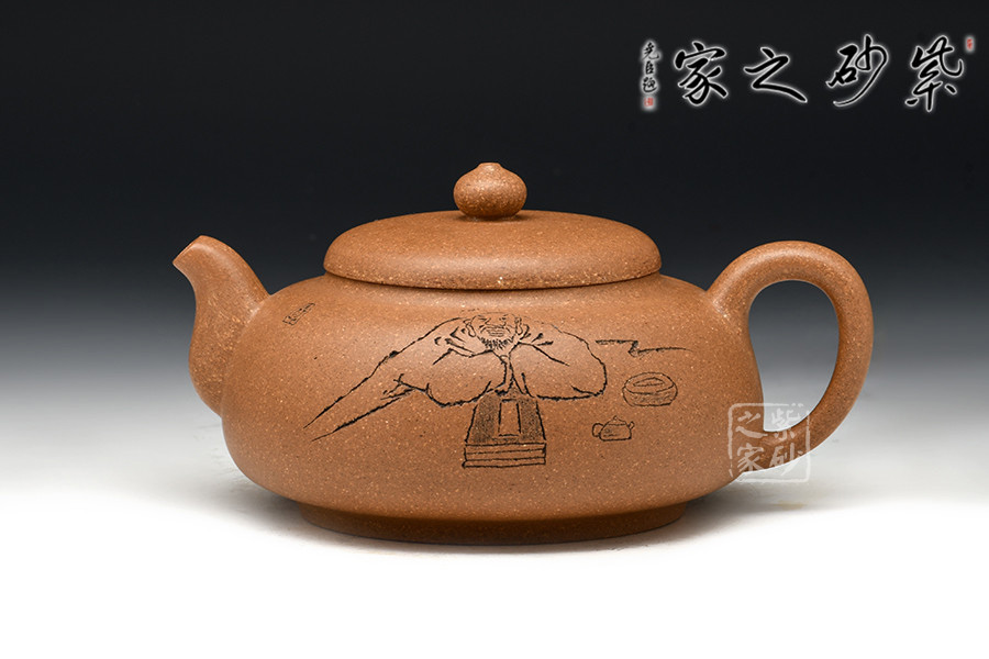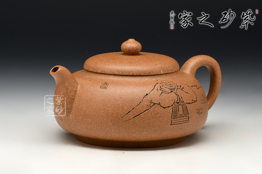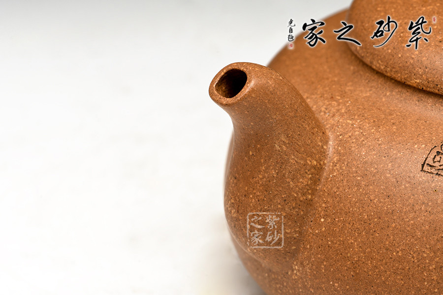 扁圓的壺體,簡約的造型,整器樸拙素凈之感。加之長時間窖藏陳腐的熟泥老段泥作料,質(zhì)堅而溫潤,透氣率極佳,茶湯順和平適,操縱沖茗技巧要求不高,甚適生手使用。
