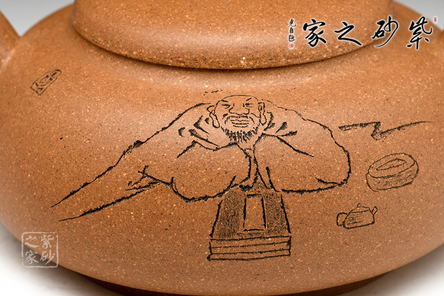 A面: 裝飾: 僧刻 裝飾者:云石 裝飾內(nèi)容: 簡筆刻畫,僧之入定,品茗誦禪