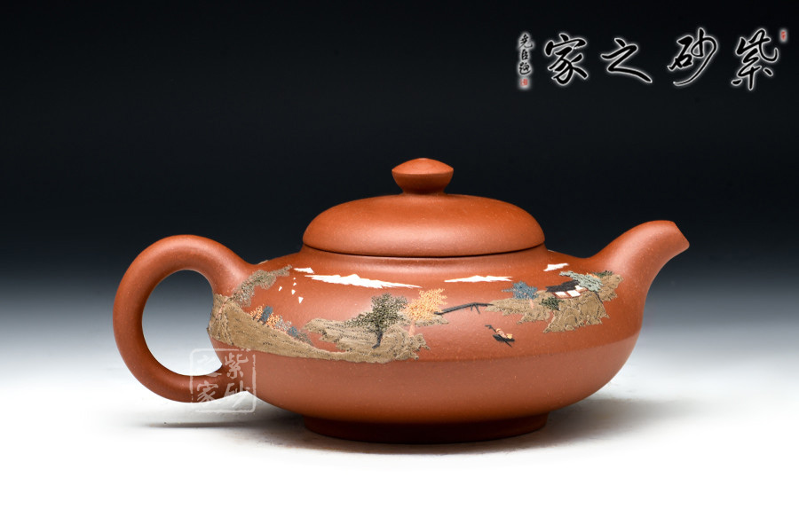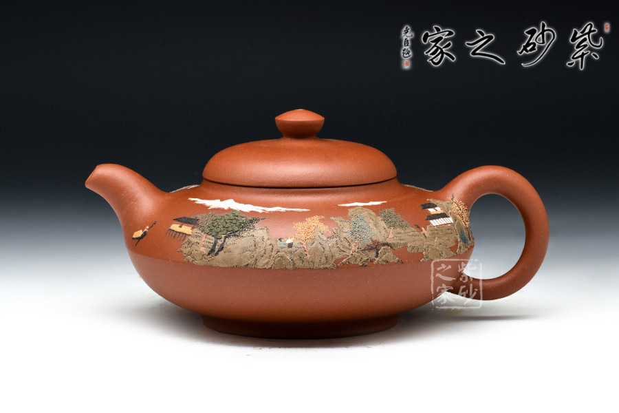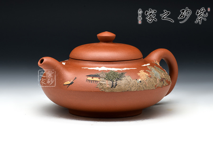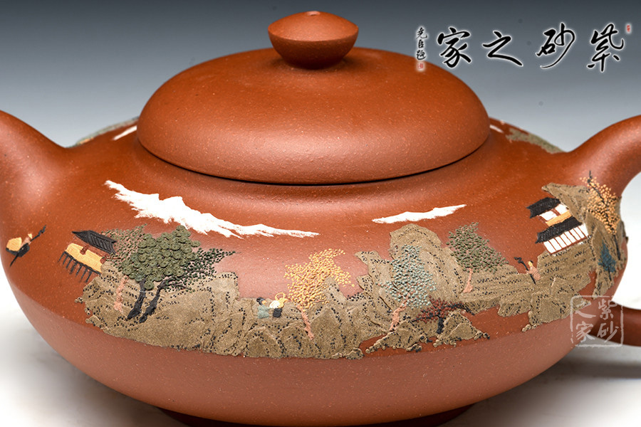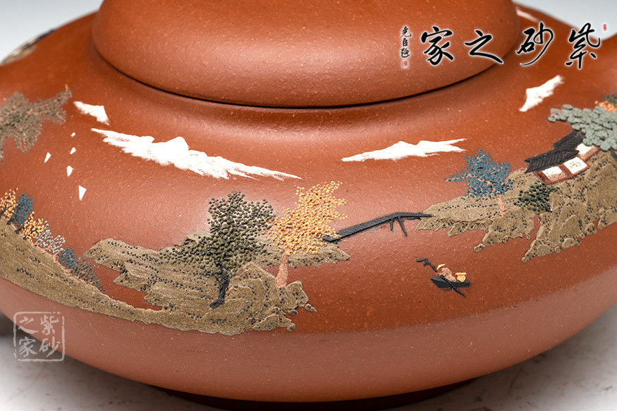 通體裝飾: 裝飾: 泥繪山水 裝飾者:鮑剛明 裝飾內(nèi)容: