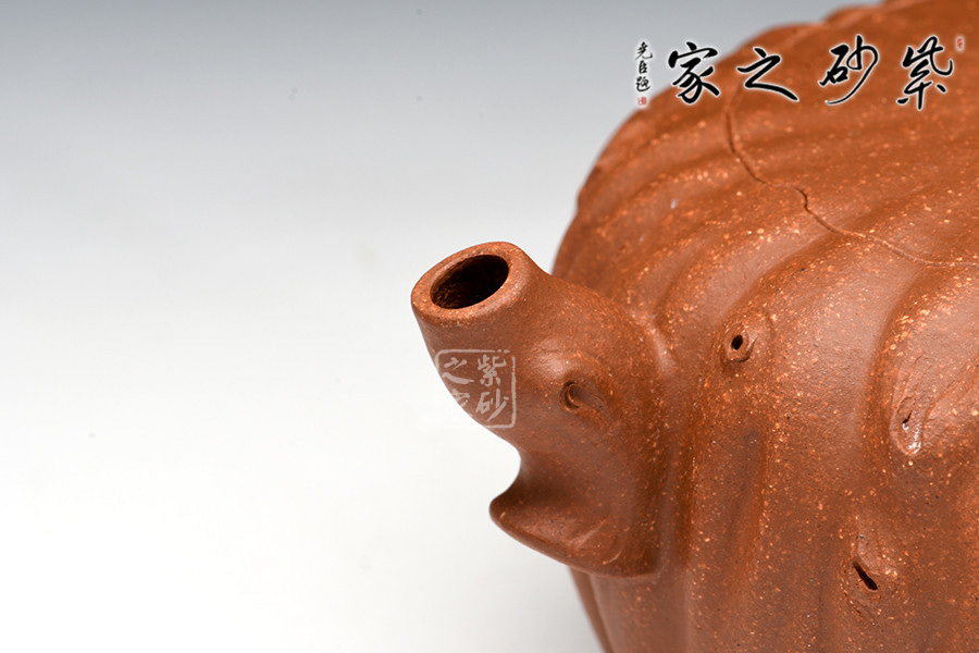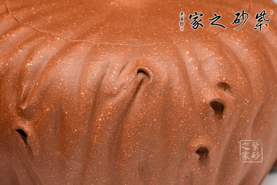 泥性:原礦因含緞泥、紅泥、紫泥等諸多共生礦,陶之后,于深沉之“橙紅色”底上,滿佈五彩斑斕的粗細(xì)、深淺之紅、黃星斑點(diǎn)。