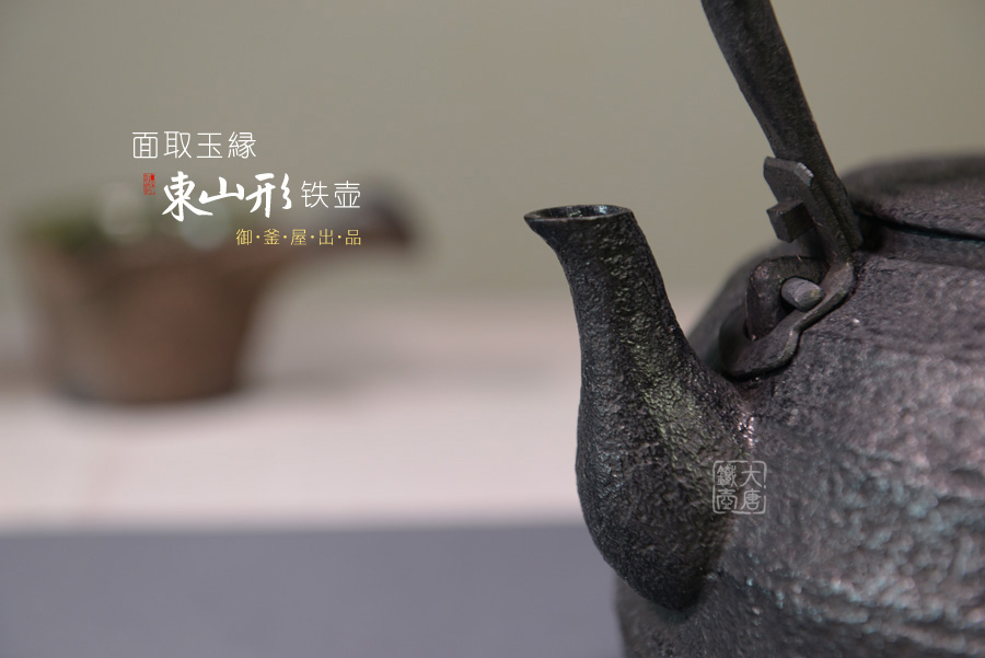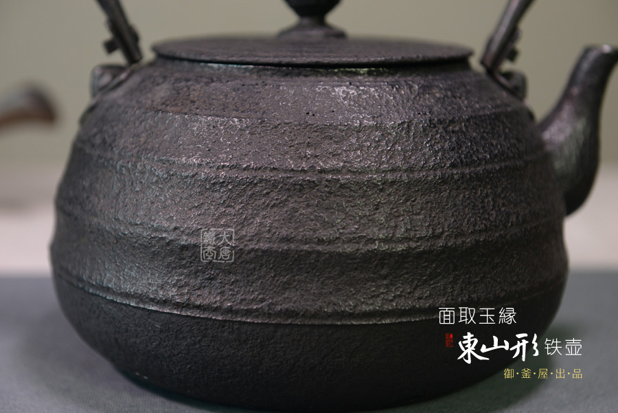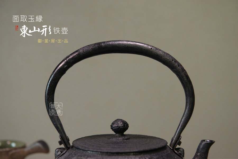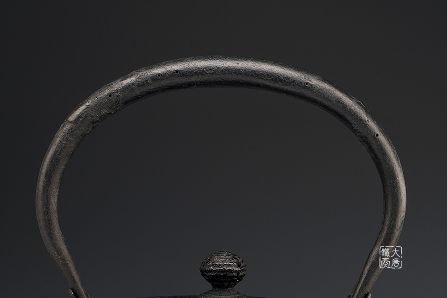 從壺肩到壺身的線條上截取平面,用優(yōu)美的邊緣來讓平面看起來柔和。另外 鉉(提梁)使用的是最高工藝的袋鉉,并使用插式提梁底座。合縫處稍微打開了些,增加一些風趣。毫無疑問,是最高級的作品