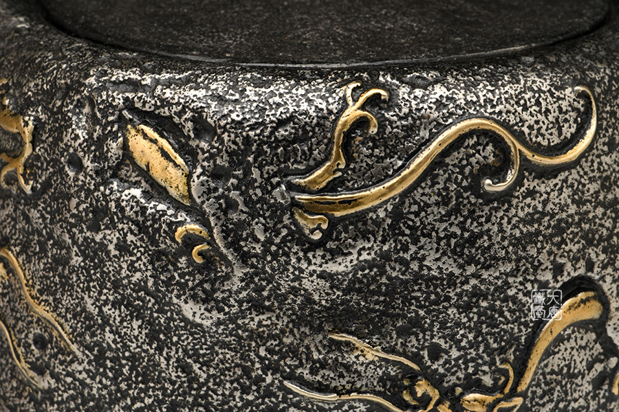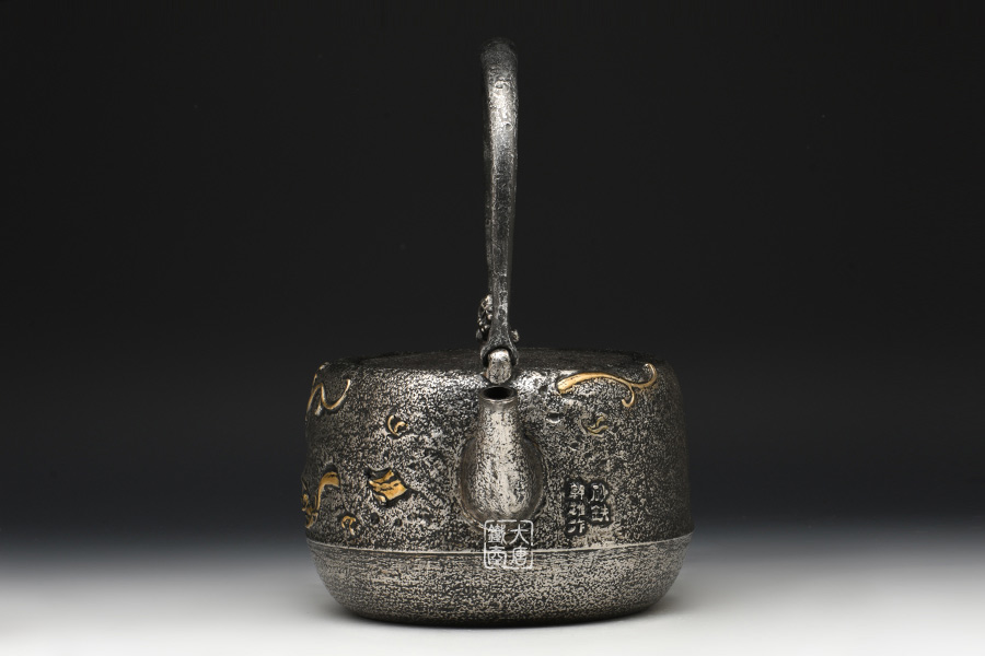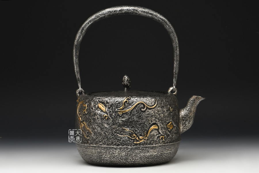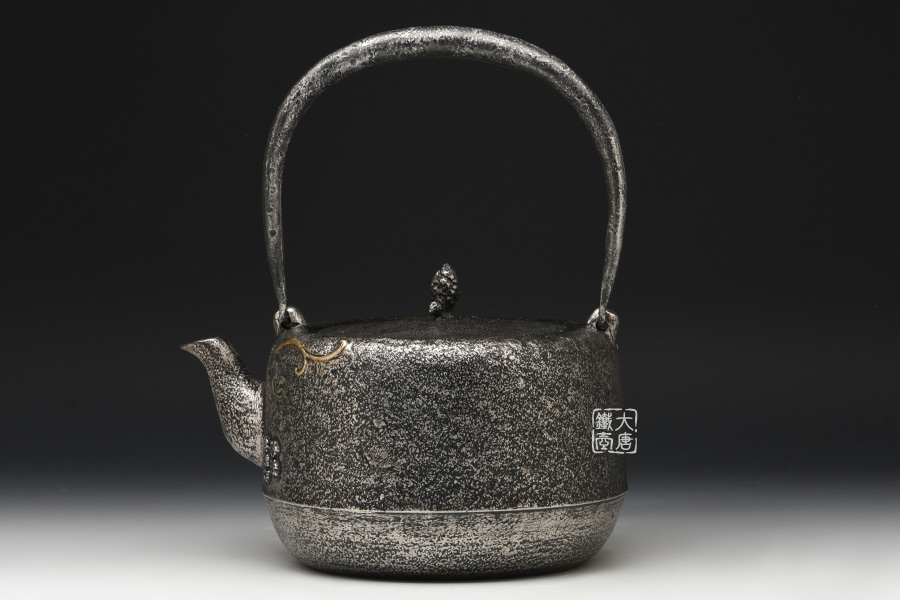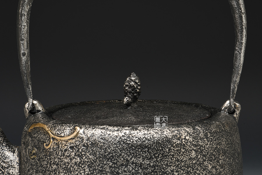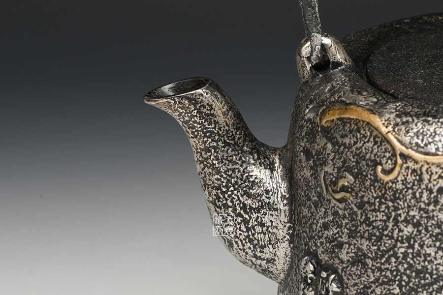 荒井工房的鐵瓶除了在鑄造工藝上有嚴(yán)格的規(guī)范和體系,在鐵瓶裝飾技術(shù)上也頗有建樹。除了傳統(tǒng)的印刻技術(shù)外,荒井工房還掌握了非常出色的金銀鑲嵌技藝,尤其以大片的鏨刻銀片最為出眾,這在山形當(dāng)?shù)靥每谥歇?dú)樹一幟。