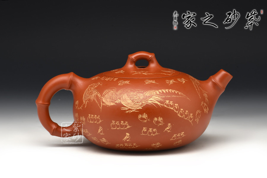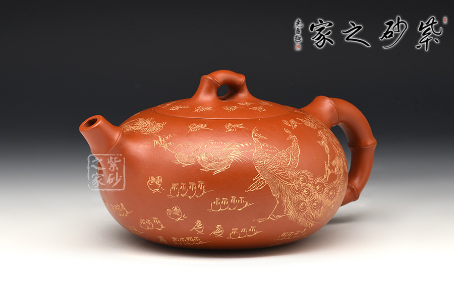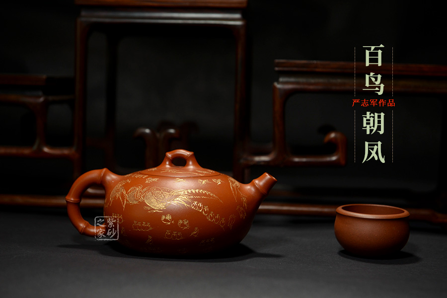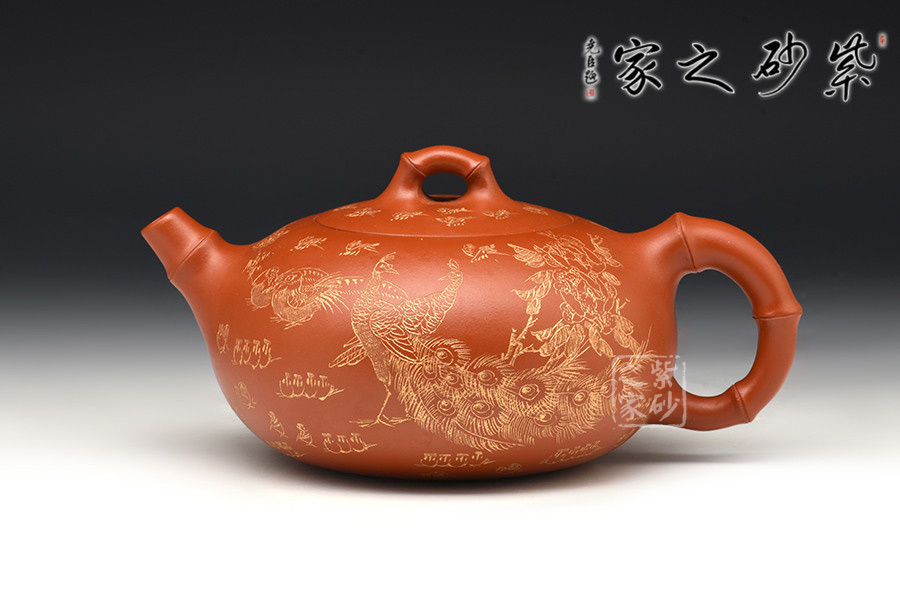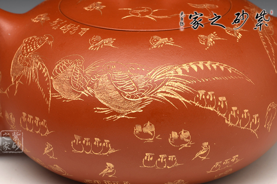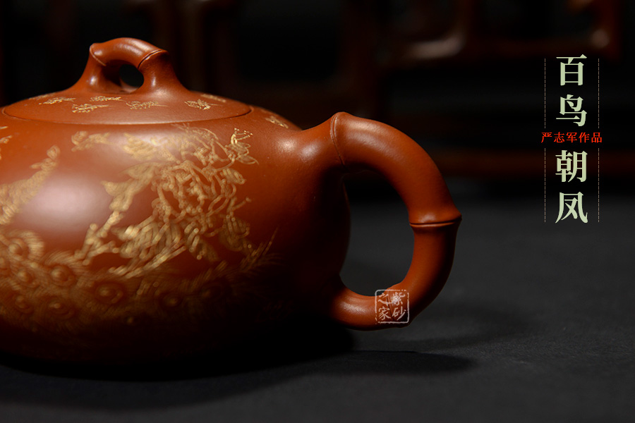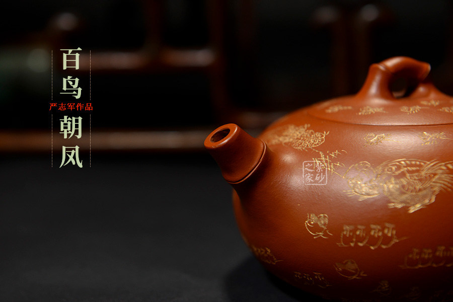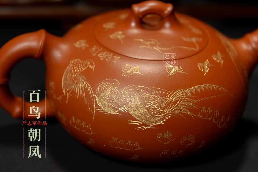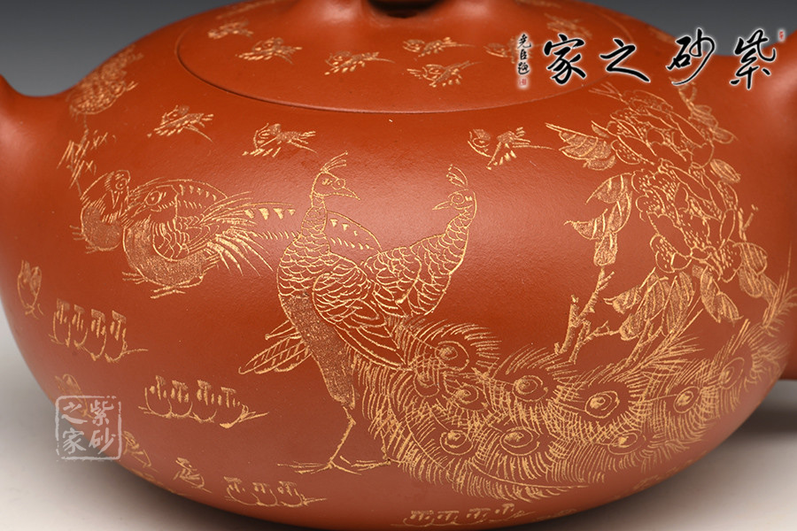 這款壺的亮點(diǎn)在于壺身上“百鳥(niǎo)朝鳳”的圖案裝飾,整體看上去高貴而又典雅,富于美好的寓意。