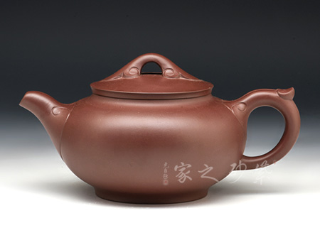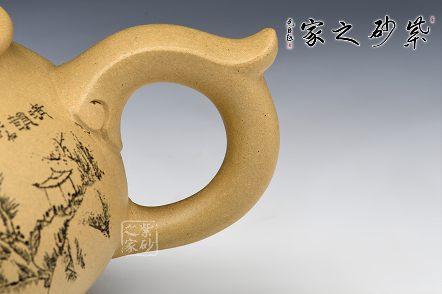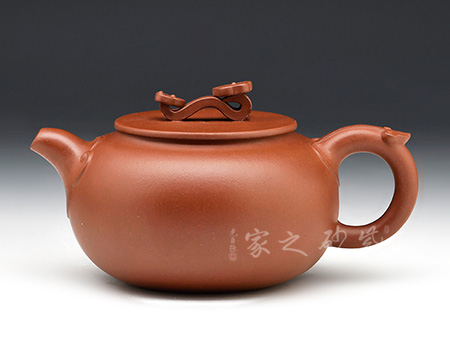 壺型圓潤(rùn),上收下闊,圈足作底,造型似古樸爐鼎,剛?cè)岵?jì)。彎嘴、如意飛形把,藝術(shù)感濃厚,且寓意四季如意,具有美好的祝福之意。平蓋中間隆起,其上摘手典雅有致,整器線條流暢,各部位比例精當(dāng)。