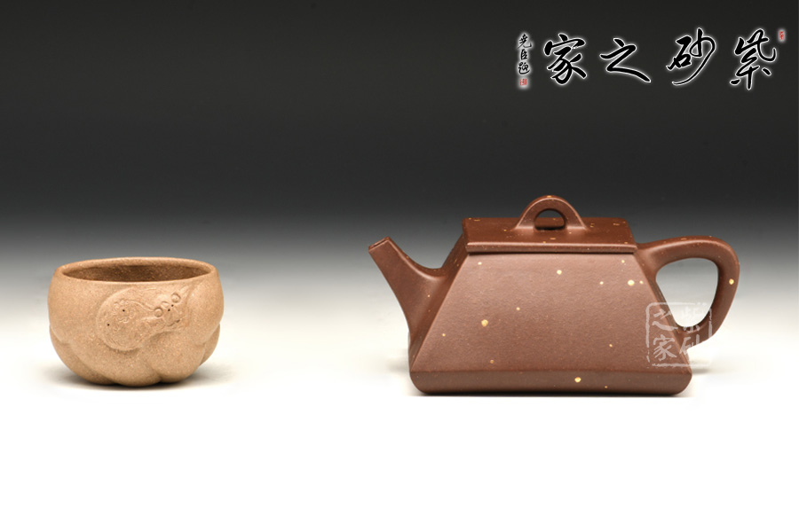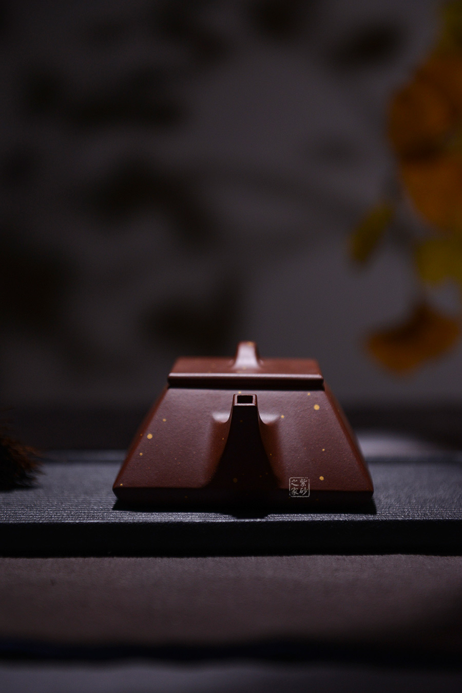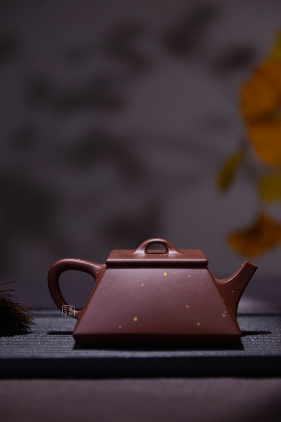 加上點金手法的裝飾,整壺通體金光點綴,在樸拙之外添加了一絲輕靈之感,賞心悅目。