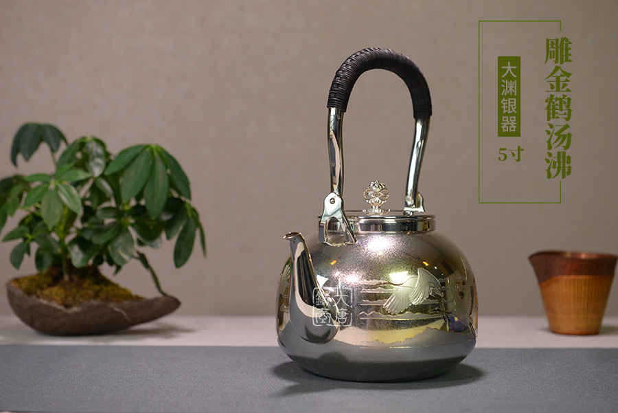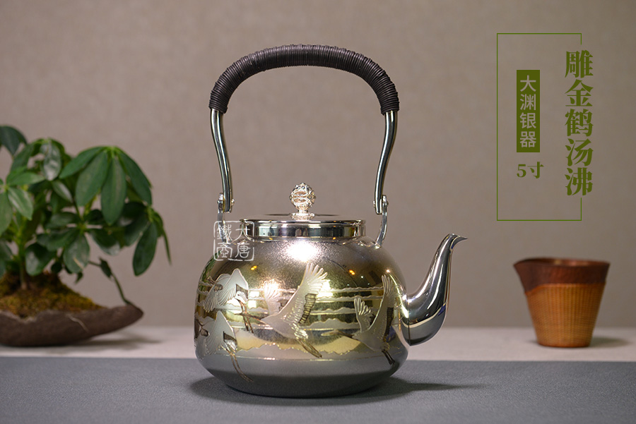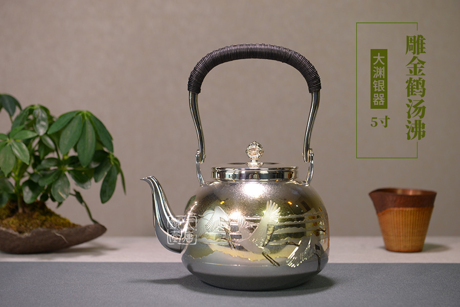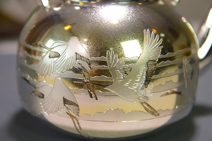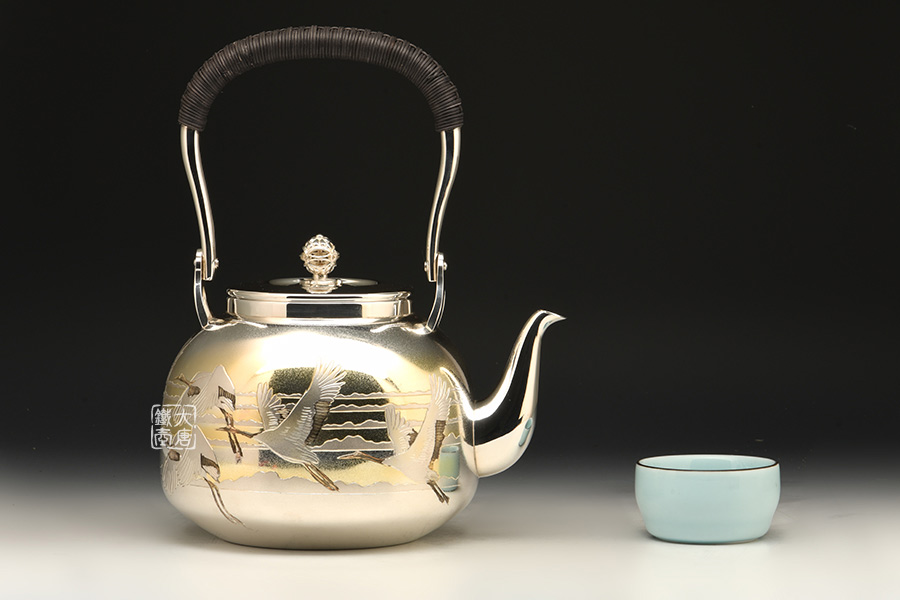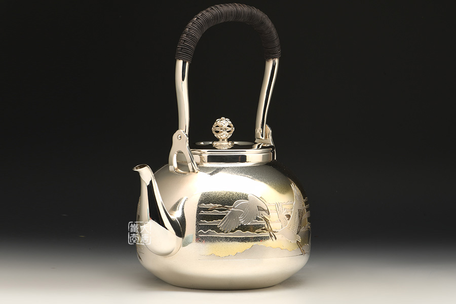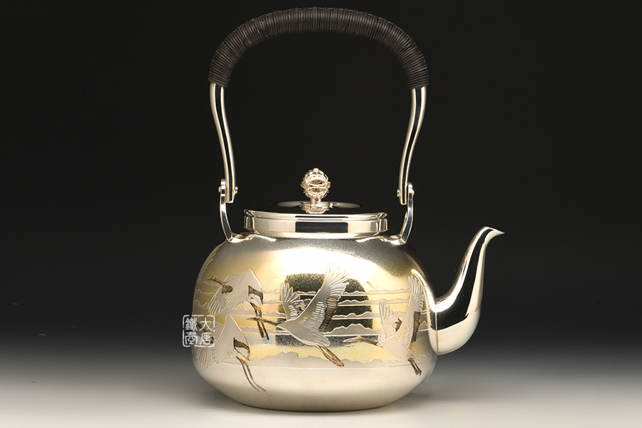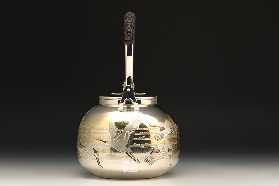 大淵銀器 雕金鶴湯沸5寸 [ 編號(hào):75098 ]