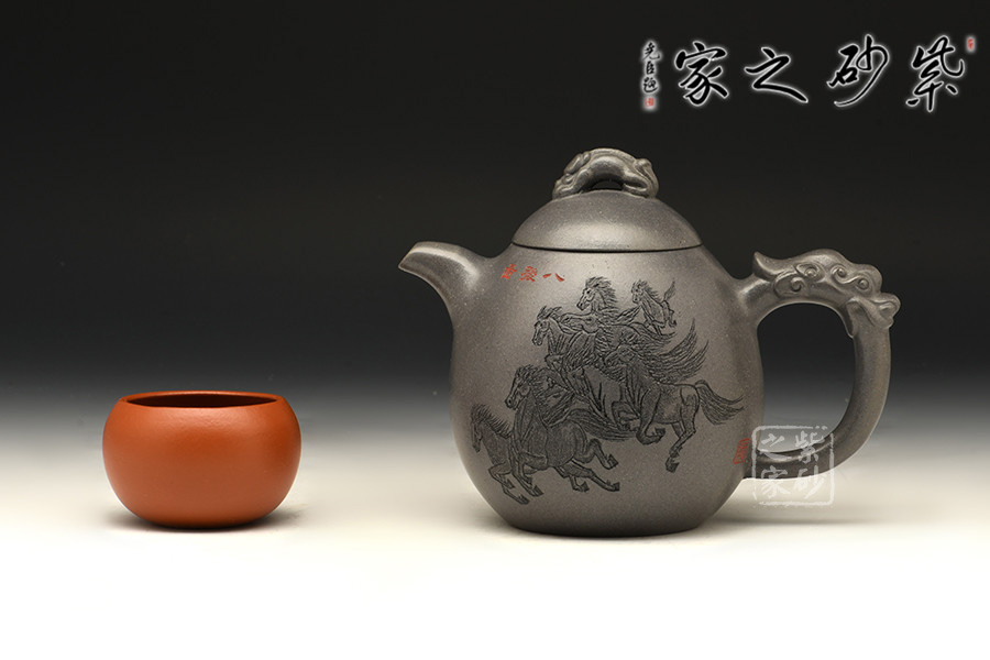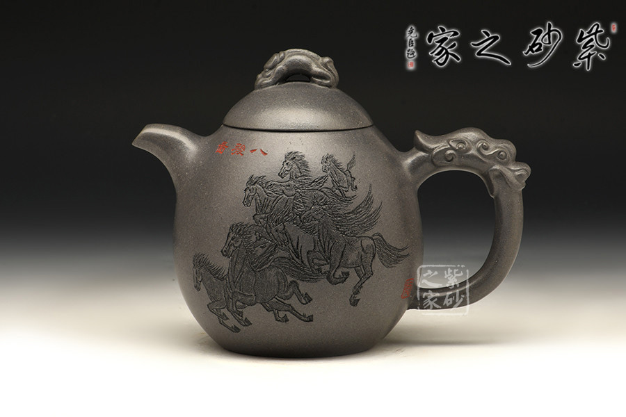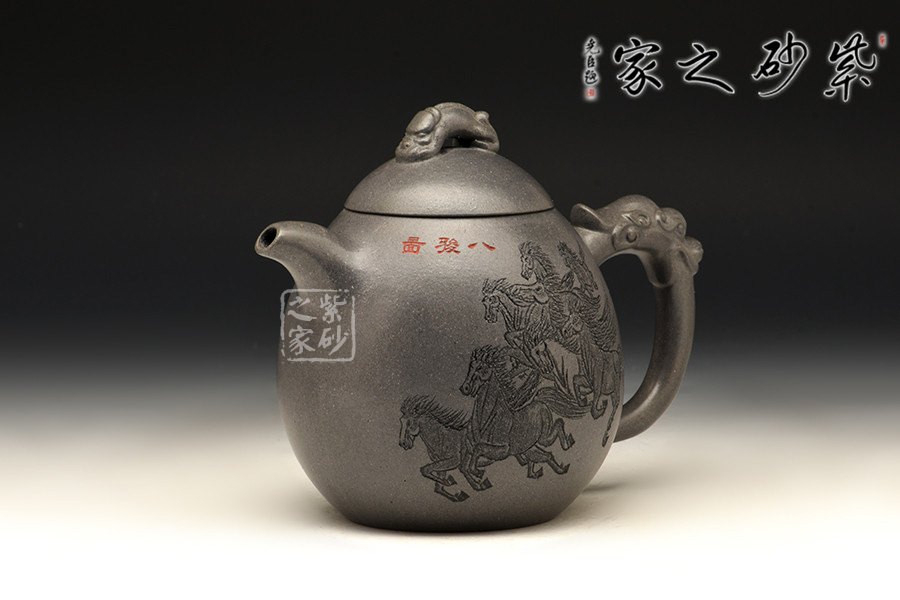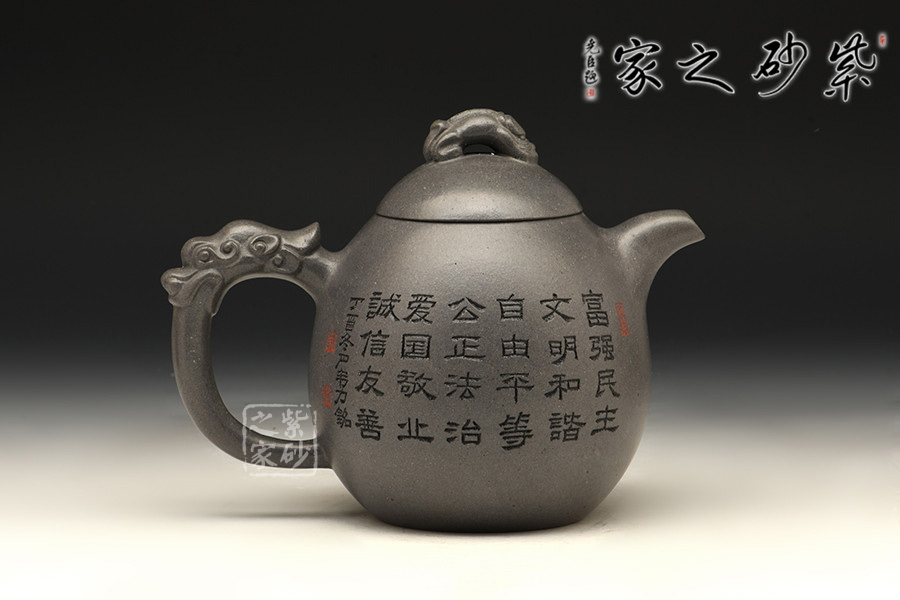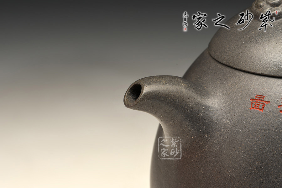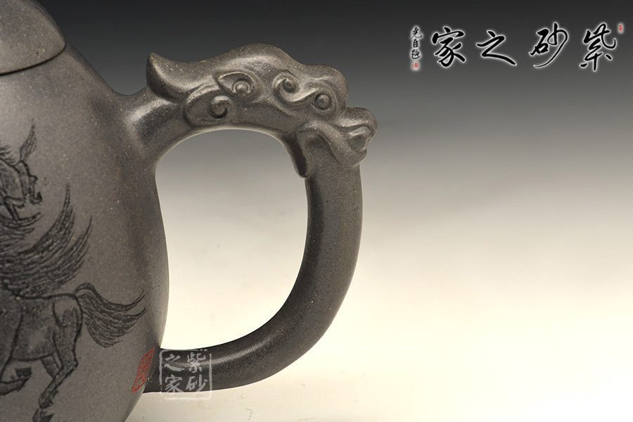 一彎嘴微微下沉,壺蓋與肩線自然過渡;壺鈕以瑞獸為形,寓意祥瑞;耳形握把舒展有力,以龍為飾,氣宇軒揚。