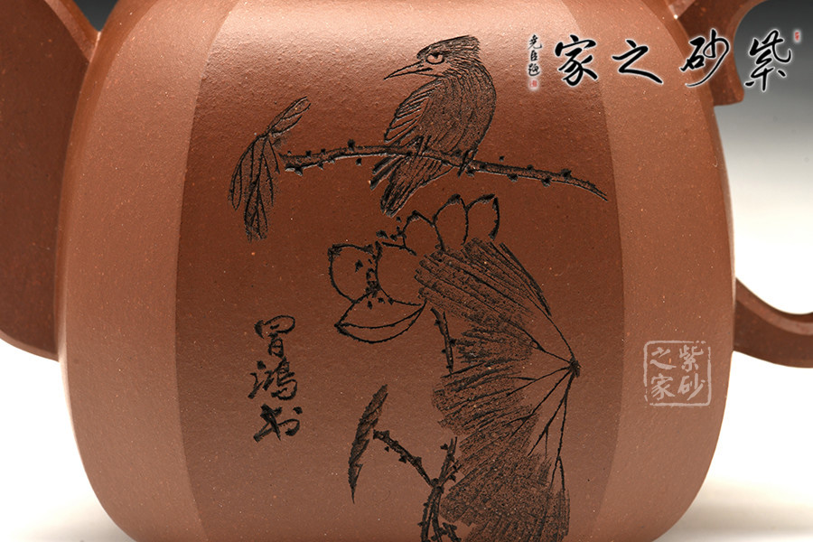 李昌鴻大師于壺身之上刻山水詩詞,表明對(duì)高徒楊瑤芬壺藝的認(rèn)可,同時(shí)“壺隨字貴”,也增加了此壺的收藏價(jià)值。