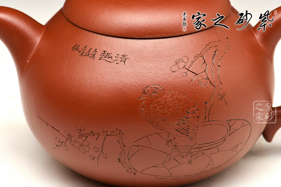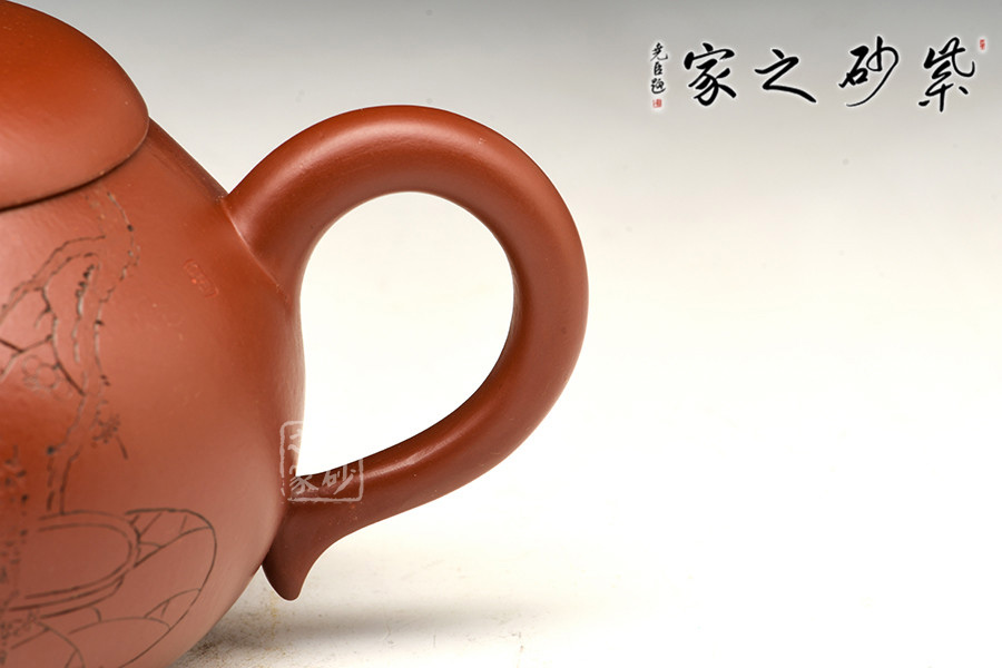 特點(diǎn):質(zhì)感綿密、緊實(shí)細(xì)緻,持之扎實(shí)沉重、紅潤(rùn)豔麗,泥中極品,無(wú)以倫比;泥胚含少許原礦顆粒,沖淋熱水后色變極大,呈紅中帶紫,養(yǎng)壺易現(xiàn)“包漿”之美。