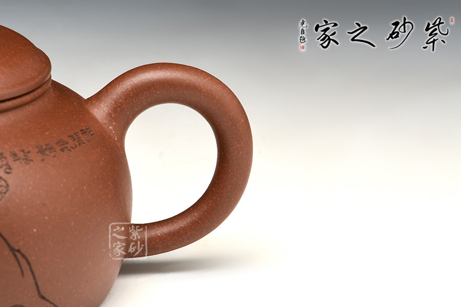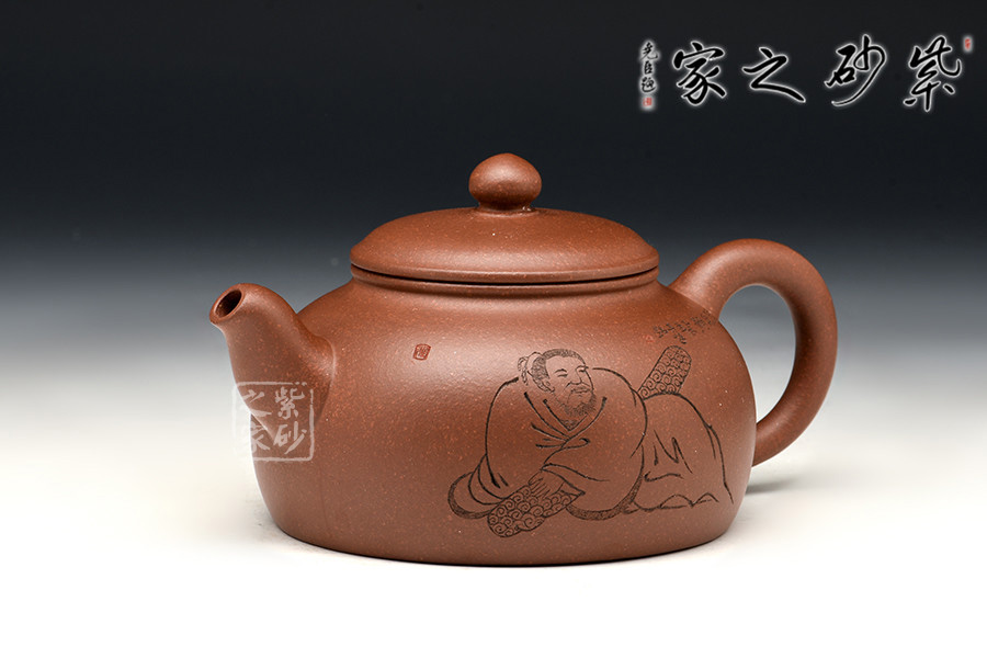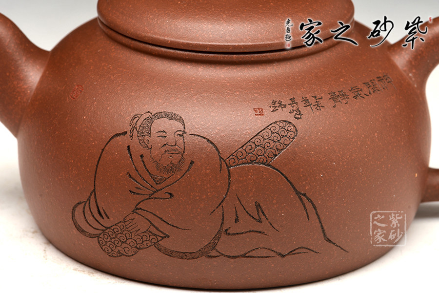 整器簡(jiǎn)約而穩(wěn)重,嚴(yán)謹(jǐn)而古樸??倘宋镌娢娘椫?,刀法老練,飄逸灑脫,不拘一格。壺形的制作、壺身的裝飾設(shè)計(jì)都極具文人風(fēng)味,賞玩俱佳。