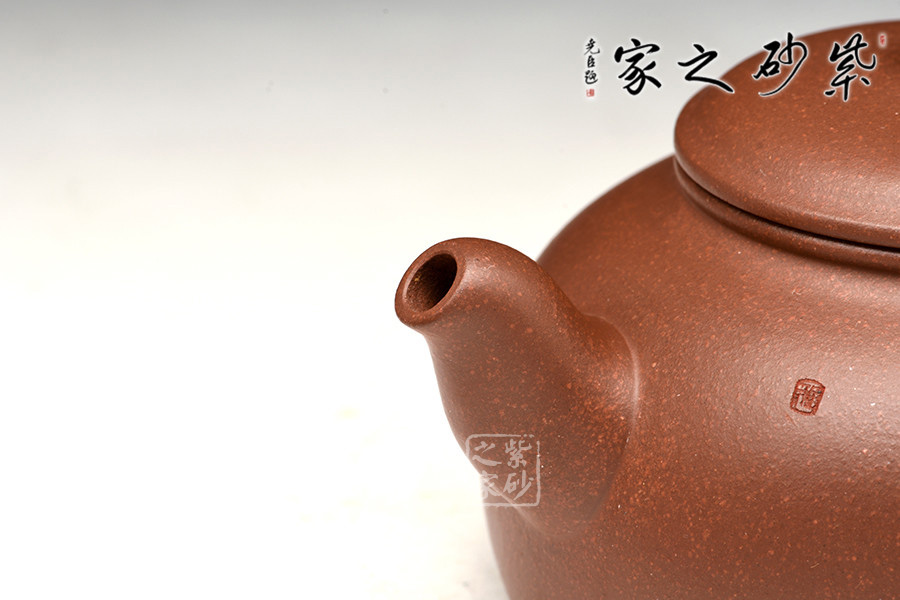 此壺為半月壺式,耳形鋬,三彎流,鈕若寶珠,壓蓋密實(shí)。圓形光器,用以事茶,茶能發(fā)真茶之色香味,出水暢快,提拿自如。