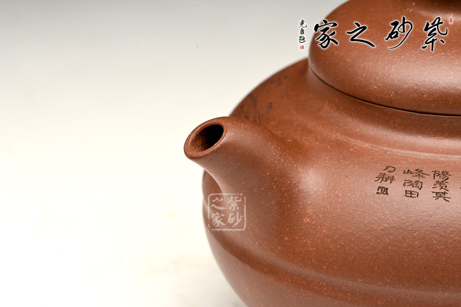 壺流自壺腹延伸自然,把高挑圓潤,與流對應稱勢。中置一腰帶線將全壺提攜神韻,變化中求統(tǒng)一,以達完美。