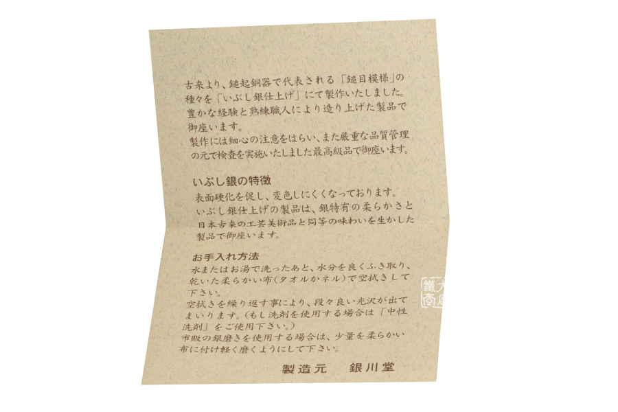 1890年(明治23年)日本銀器界名門早川德太郎于日本新瀉縣創(chuàng)立了銀川堂。