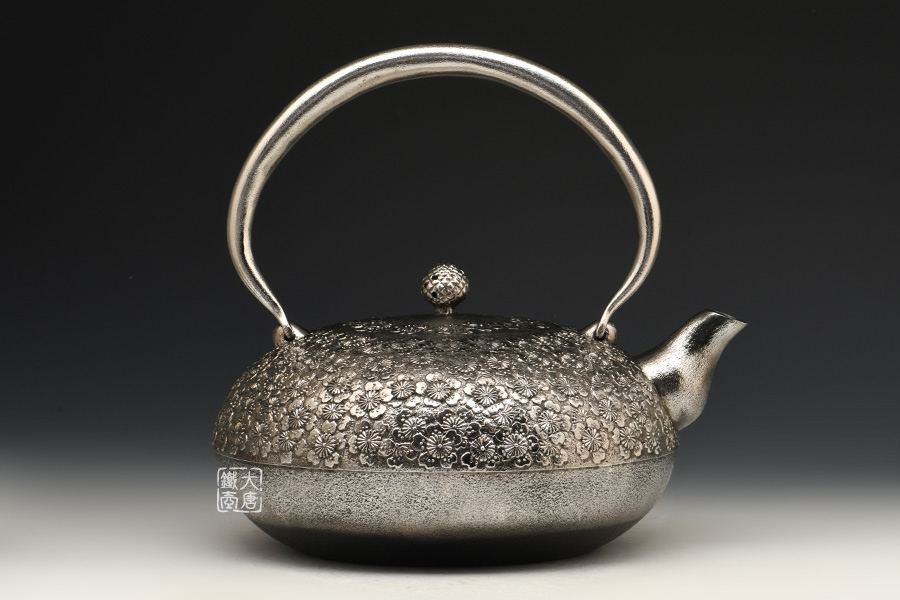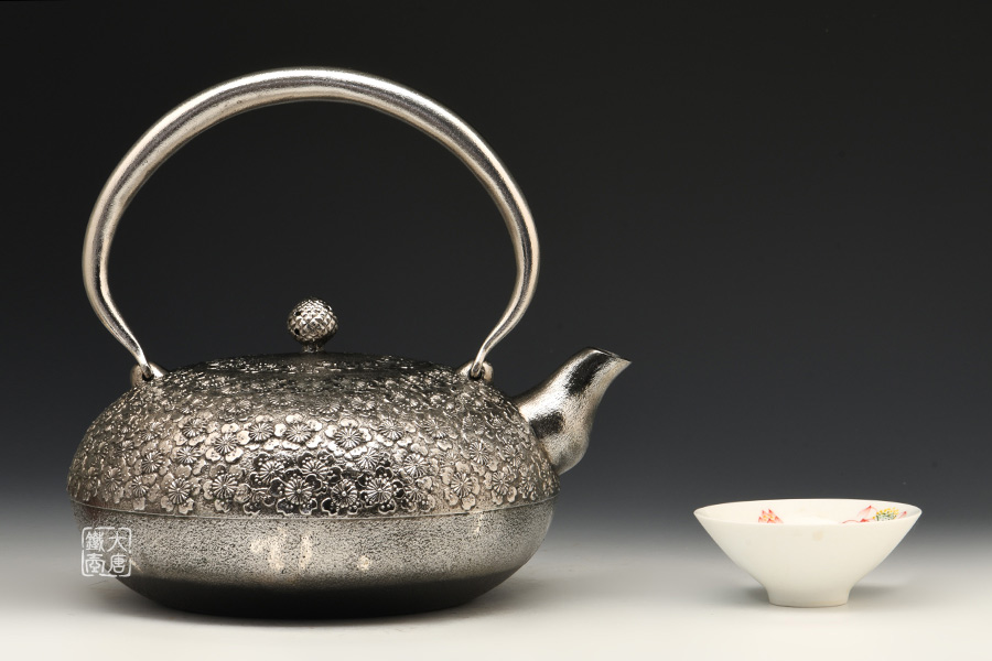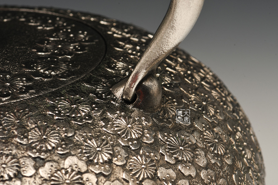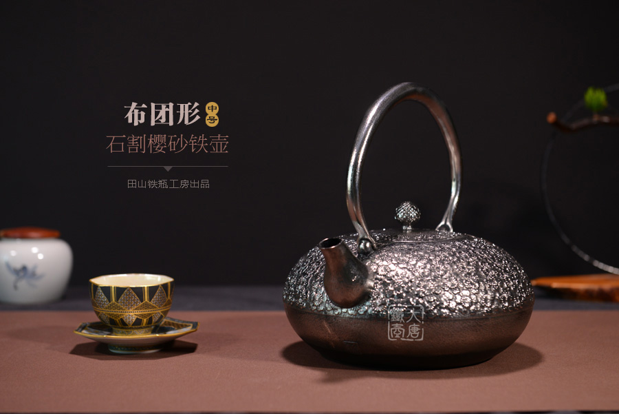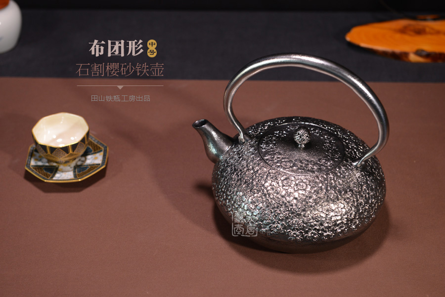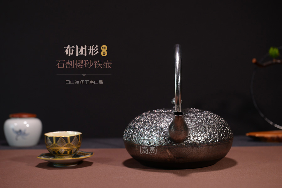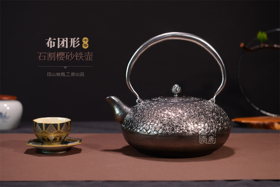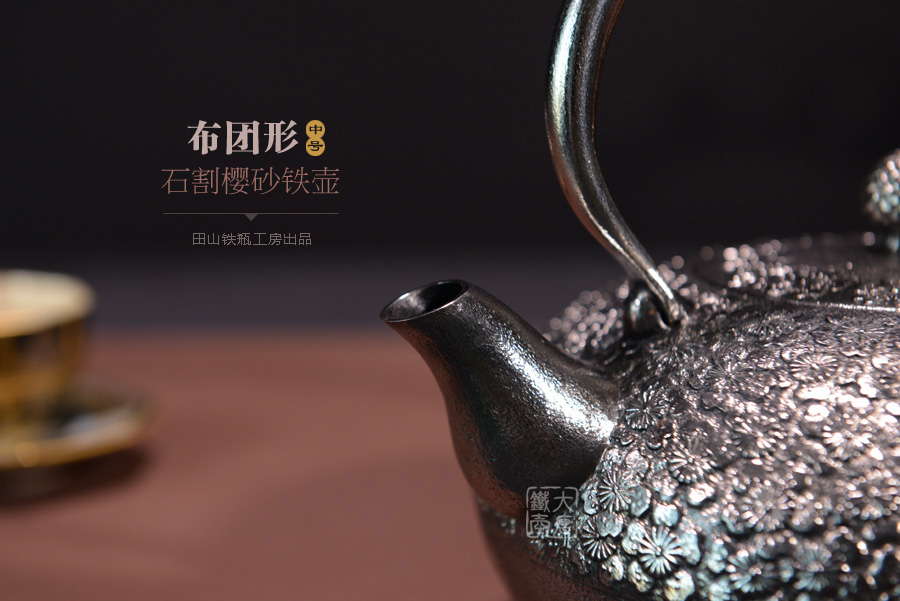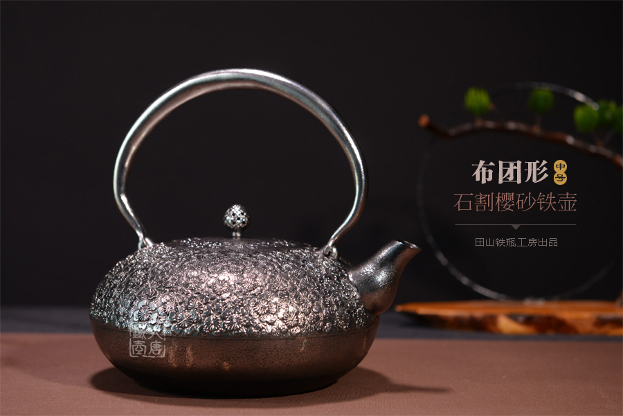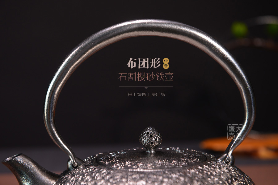 南部名家田山和康匠心手作,珍稀砂鐵制,經(jīng)典布團(tuán)型,櫻花紋,整器圓潤飽滿,鐵肌細(xì)膩潤和,搭配夾把式蟲蝕提梁,大氣簡約,品質(zhì)非凡。