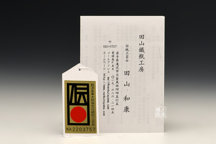 田山和康,十五歲就進(jìn)人南鐵四大家的鈴木盛久工房,從學(xué)徒做起,師事鈴木盛久十三代一一鈴木繁吉。為了在未來做出更多屬于自己的鐵器作品,也有更多空間時(shí)間持續(xù)傳承鐵器傳統(tǒng)工藝,于是田山和康2011年獨(dú)立,正式成立了“田山鐵瓶工房”。目前工房內(nèi)僅有田山和康和其兒子田山貴紘兩個(gè)職人。
