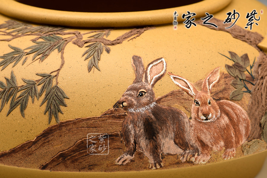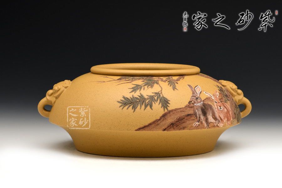 A面: 裝飾: 雙兔泥繪 裝飾者: 張燁 裝飾內(nèi)容: 泥繪配色和諧,神態(tài)逼真,纖毫可見(jiàn),意境自然。
