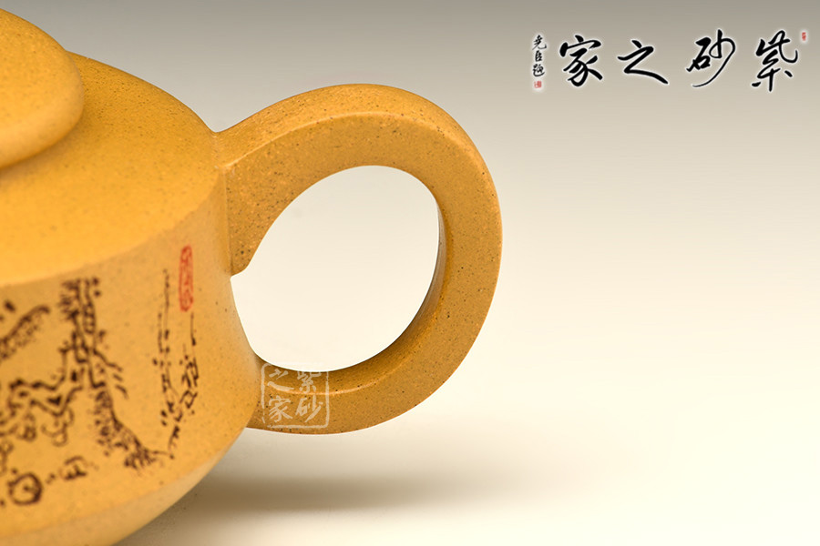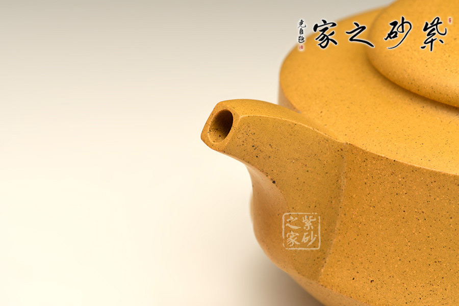 泥性:感甜嫩綿密,質(zhì)堅(jiān)而溫潤(rùn),呈近田黃色調(diào),為江蘇宜興趙莊山系朱泥礦~黃石黃之共生礦,經(jīng)挑揀練製而成,因含鐵量只達(dá)6%左右,致陶之后呈“金田黃色”。