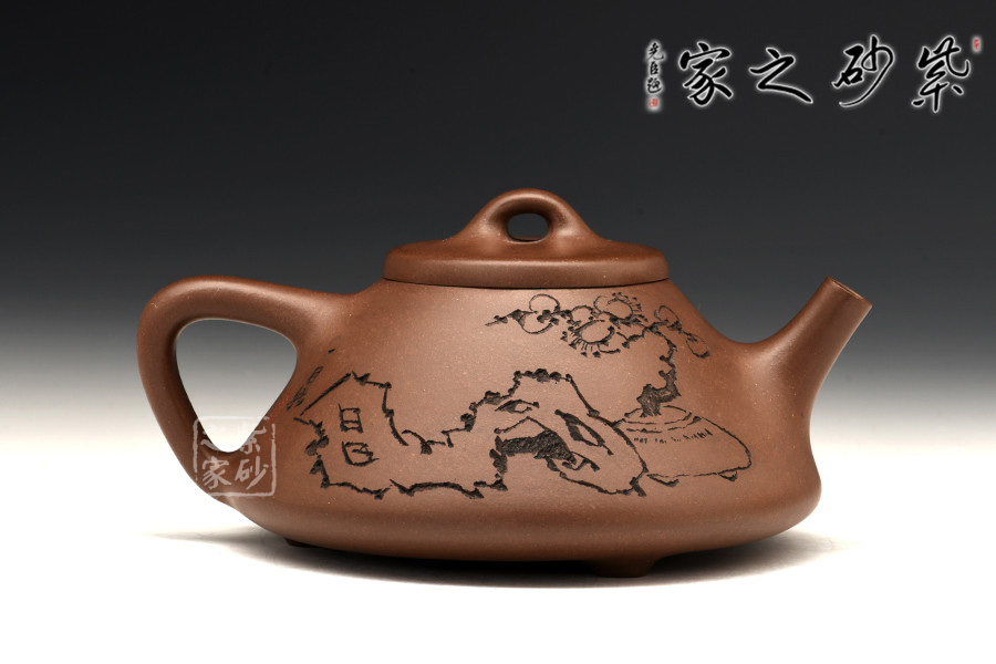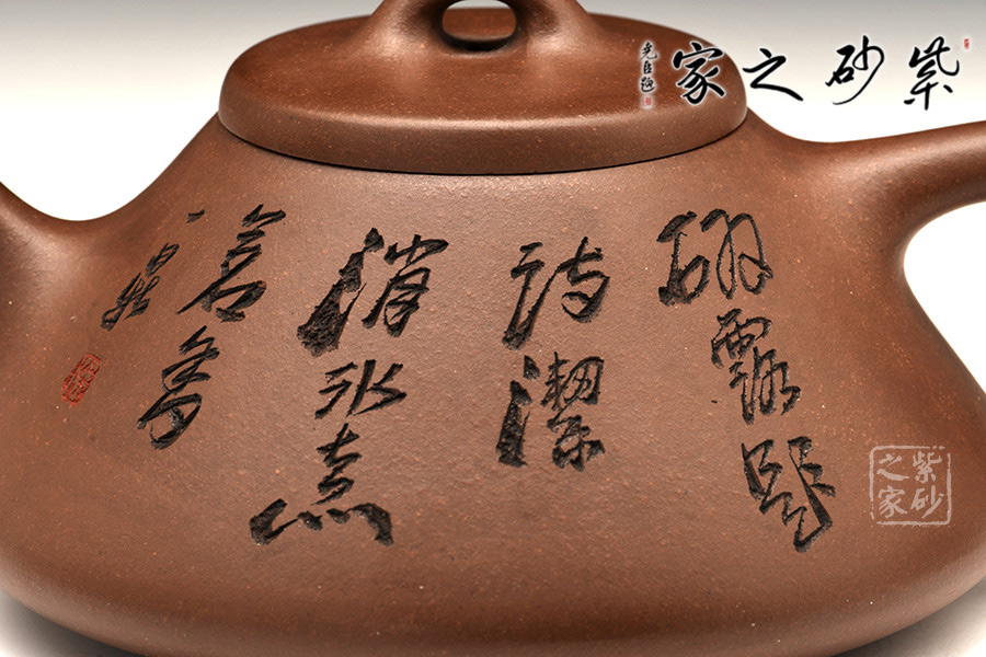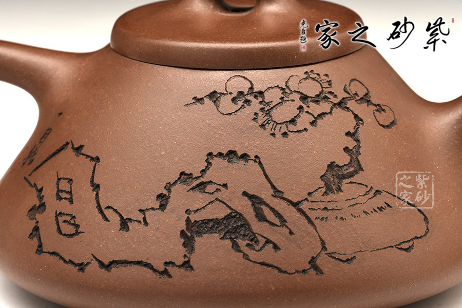 徐赟,精于陶刻,師從陶刻大家錢一清和中國(guó)工藝美術(shù)大師曹亞麟,又得中國(guó)工藝美術(shù)大師鮑志強(qiáng)指點(diǎn),陶刻制壺雙精。