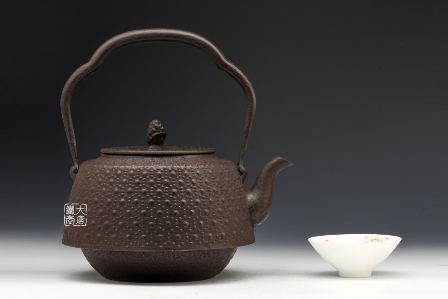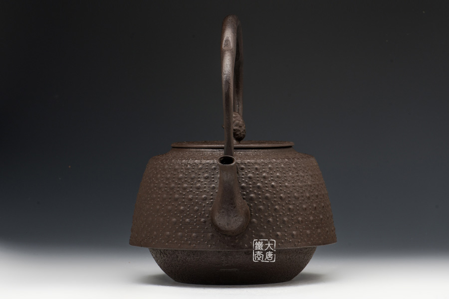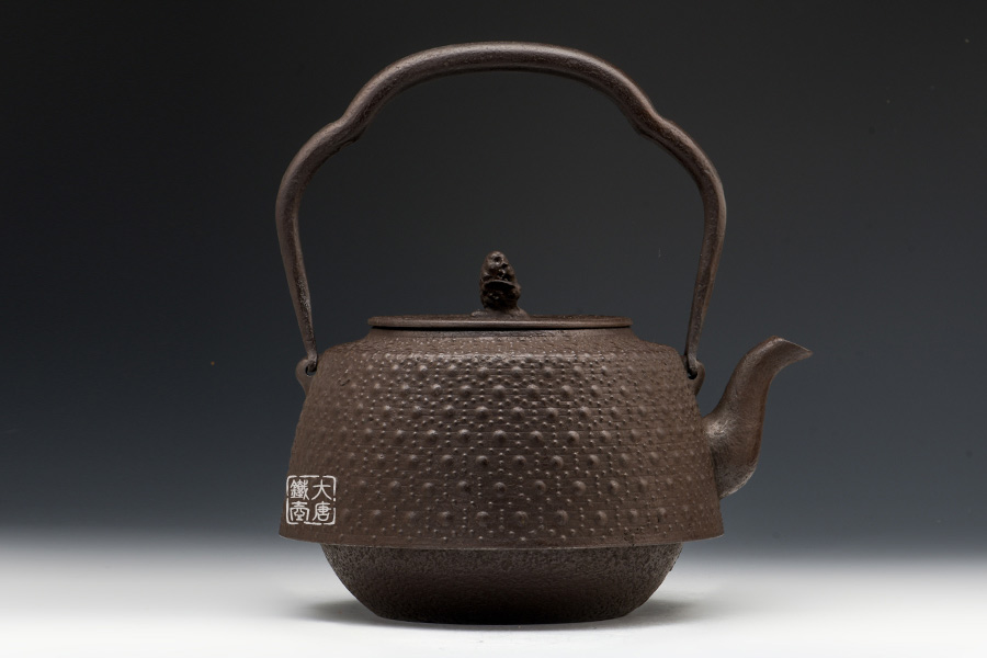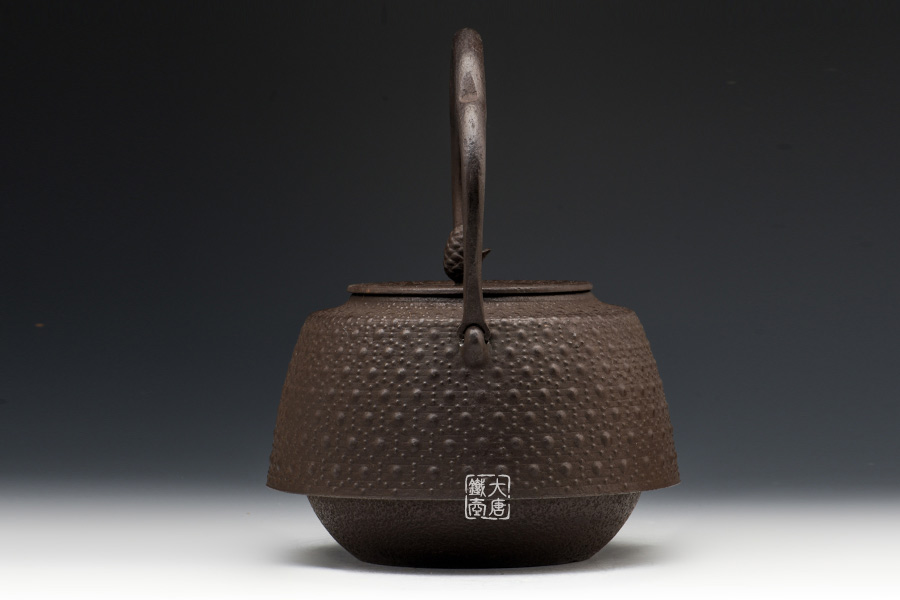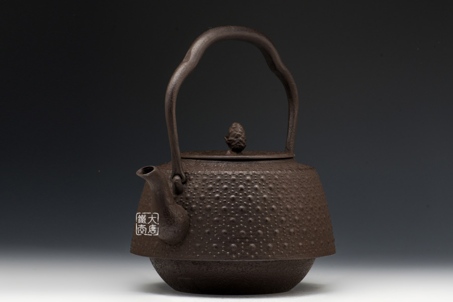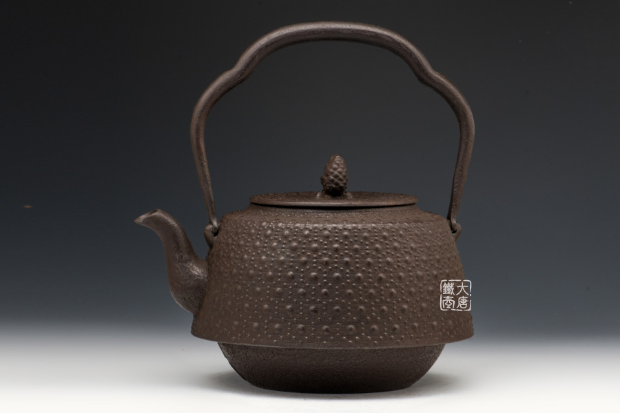 虎山工房創(chuàng)立于1955年,位于盛岡市手作村,是日本南部鐵器中的重要代表。”虎山”之名源于初代釜師熊谷平吉的出生地是以前南部藩飼養(yǎng)老虎的地方,故取“虎山”作為工房的名字。熊谷平吉擅長印刻湯釜和鐵瓶上的圖案,制作的鐵器帶有濃厚的藝術氣息,被視為鐵和火融合于一身的茶道藝術品。虎山工房制作的鐵瓶,主要以砂模澆鑄的方法為主,但是改進了木質(zhì)刮板的制模技術,從而得以制作出多邊形的鐵器,在南部鐵器中獨樹一幟。