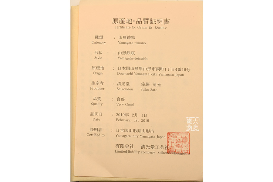 清光堂是日本的鐵器世家,也是少數(shù)幾家生產(chǎn)以銅蓋鐵壺為主的山形縣堂口。從藩政時代開始,歷經(jīng)了四百年的傳承。清光堂第八代傳人——佐藤清光,在二戰(zhàn)后憑借卓越的工藝技術(shù)和美學天賦,將家業(yè)發(fā)展成茶釜專門工坊,為現(xiàn)在的『清光堂』奠定了根基。其本人亦被認定為“國家制定第550號傳統(tǒng)工藝士”,成為一代制釜名家。