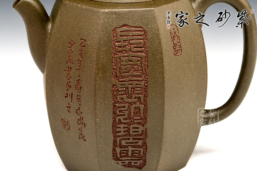 簡介:綠泥,玩者暱稱“綠豆砂泥”,古云“豆碧色”,泥色酷似綠豆皮,澹草綠。帶本山綠泥細黃砂,清麗出眾、雅俗共賞。所制壺品質感樸拙,砂質細膩而富有顆粒美感。壺品色澤米黃泛青,泡養(yǎng)后逐步轉為溫潤的亮色,包漿感好而易于泡養(yǎng),發(fā)幽然青光。產于黃龍山礦脈,是紫砂泥中的夾脂,故有“泥中泥”之稱。產量不多,泥質較嫩,耐火力也比紫泥為低。原礦色澤為青灰泛綠,成片巖狀或粉末狀,以手拿之即會沾染上原礦粉末顏色。也常作為胎身外面的粉料或涂料,使紫砂陶器皿的顏色更為多彩。