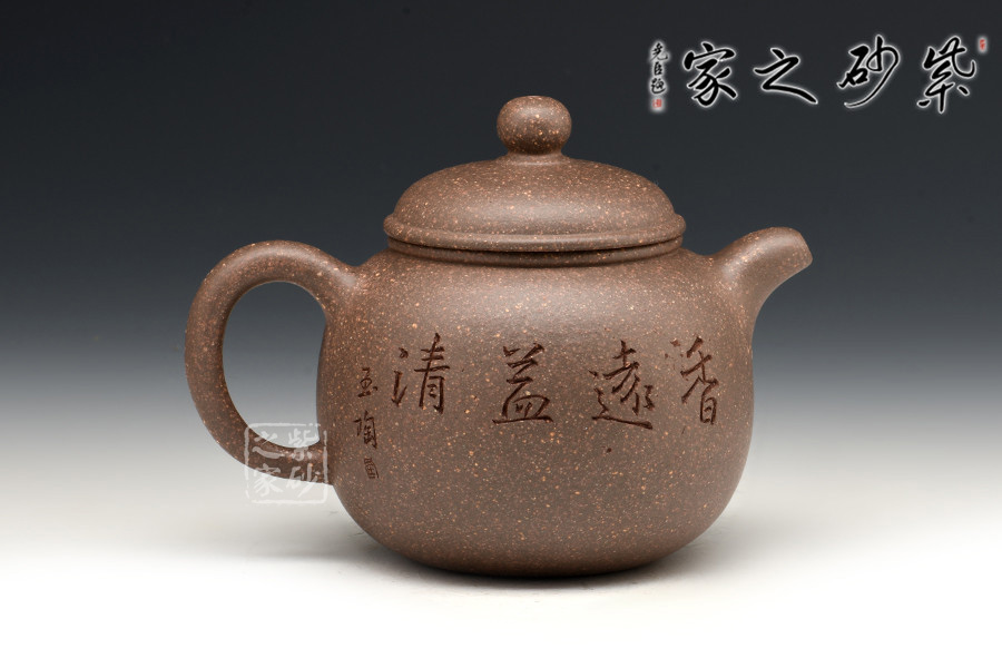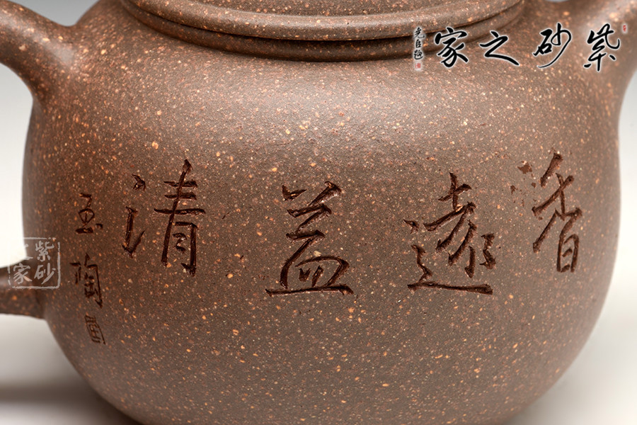 該壺體態(tài)圓潤、靈巧,壺鈕、嘴、把圓潤流暢,一氣呵成,做工極為考究,盡將其古拙素雅與“香遠(yuǎn)益清”、超世脫俗的意境體現(xiàn)最為融洽。
