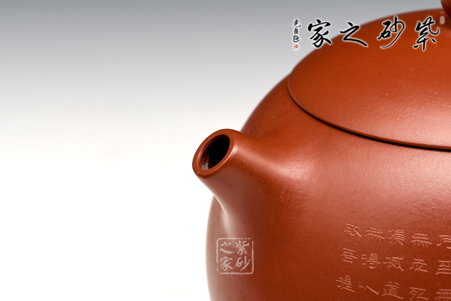 特點:質(zhì)感綿密、緊實細緻,持之扎實沉重、紅潤豔麗,泥中極品,無以倫比;泥胚含少許原礦顆粒,沖淋熱水后色變極大,呈紅中帶紫,養(yǎng)壺易現(xiàn)“包漿”之美。
