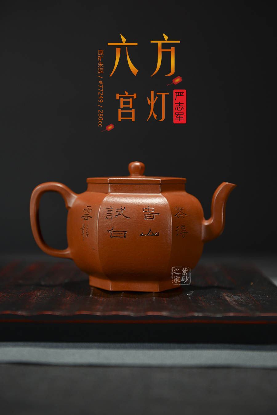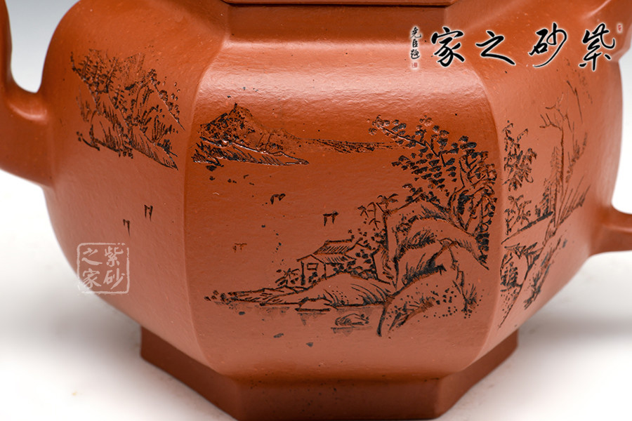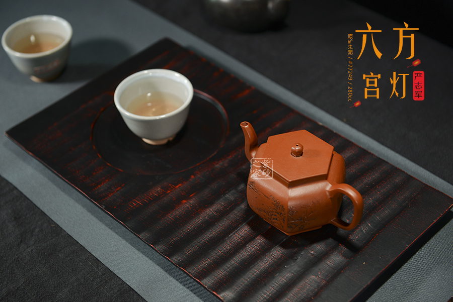 選用古代宮燈為造型,壺鈕、壺蓋、壺身、壺底均采用六方造型,古典優(yōu)美,氣韻高雅。