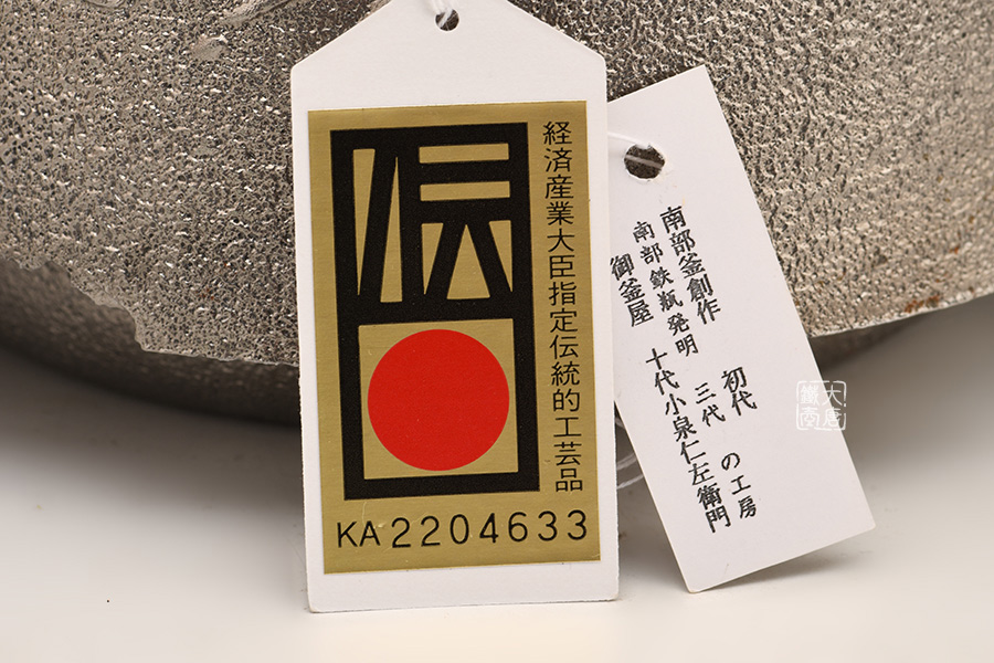 明治時(shí)期以后,小泉家族代代繼承釜師名號“仁左衛(wèi)門”,至今已經(jīng)到第10代。小泉家憑借高超的鑄造技藝,在南部鐵器的歷史上留下了許多令人引以為豪的工藝名品。根據(jù)《廣辭苑》的記載,第1件南部鐵瓶(鐵壺)就是由3代仁左衛(wèi)門清尊制作的。