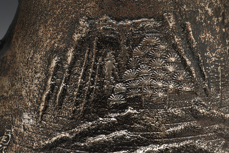 秀山堂 佐藤勝弘作 尾垂山松砂鐵壺 [ 編號:77269 ]