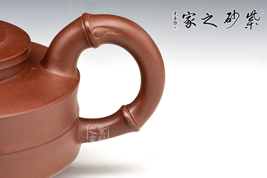 紫茄泥雍容華貴,氣質(zhì)高雅,藏紫輕紅,清秀溫潤,是泥中極品。此款勁竹壺,在穩(wěn)穩(wěn)的壺身中,可感受到竹的靈氣,流與把皆以竹段裝飾,壺身沉穩(wěn)大氣。整壺如同一顆勁松,迎風(fēng)佇立,不屈不折,這不正如同君子的品格一般嗎?
