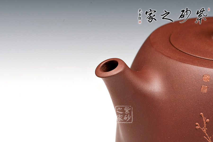 壺流短直向上,給人力量和向上感,嘴部外沿略突形成一若隱若現(xiàn)的環(huán),流根部粗壯,便于茶湯出水集束有力。