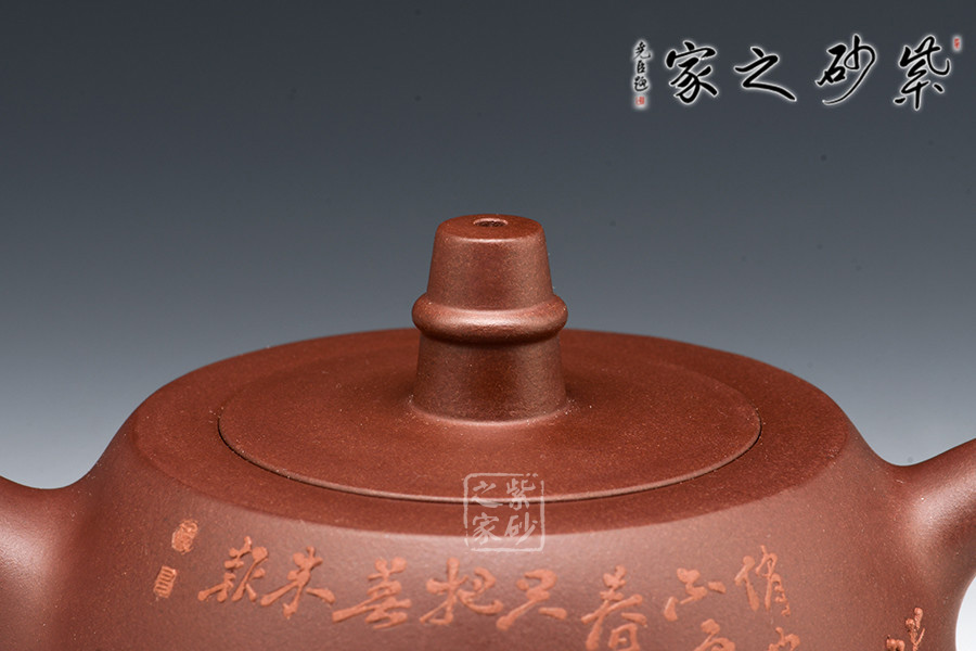 平嵌蓋,蓋沿與口沿嚴(yán)絲合縫、技藝謹(jǐn)嚴(yán),契合法度。整壺造型規(guī)整,線條流暢簡練且比例協(xié)調(diào),直中帶弧,穩(wěn)定中孕育變化,線面轉(zhuǎn)換周正舒坦。