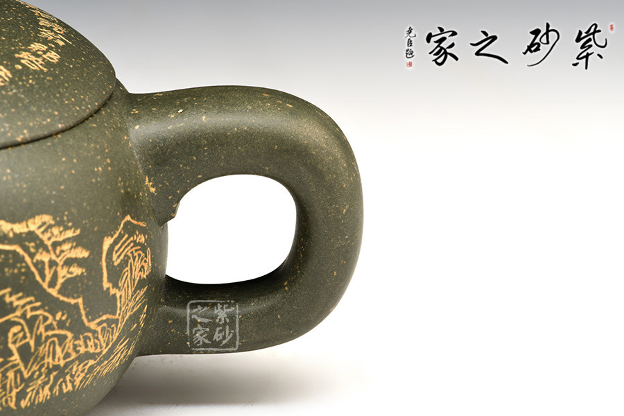 “寶兒壺”整個壺身呈簡單的缽盂狀,壺嘴明接,呈短柱形,出水爽利;壺把呈四方輪廓,圓中見方,剛?cè)岵U钭髌芬砸环N質(zhì)樸的氣質(zhì)打動人心,就如自己的心愛寶物,喜歡不需要過多的理由。
