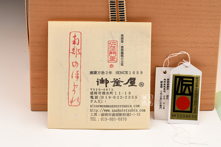 江戶幕府時期,茶道造詣頗深的第28代南部藩藩主南部重直,萌生了利用領(lǐng)地內(nèi)優(yōu)質(zhì)的鐵資源來制作茶釜的構(gòu)想。他便將京都出身的釜師-初代小泉仁左衛(wèi)門邀請至南部地區(qū)制作南部釜,這便是御釜屋最初的起源。在某種程度上,可以說釜師小泉仁左衛(wèi)門的歷史,與南部鐵器的歷史基本相同。