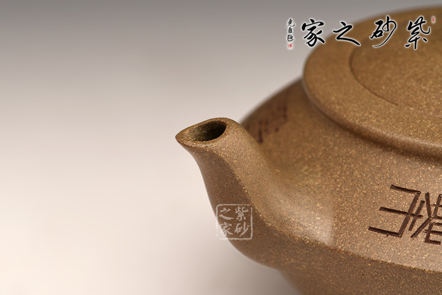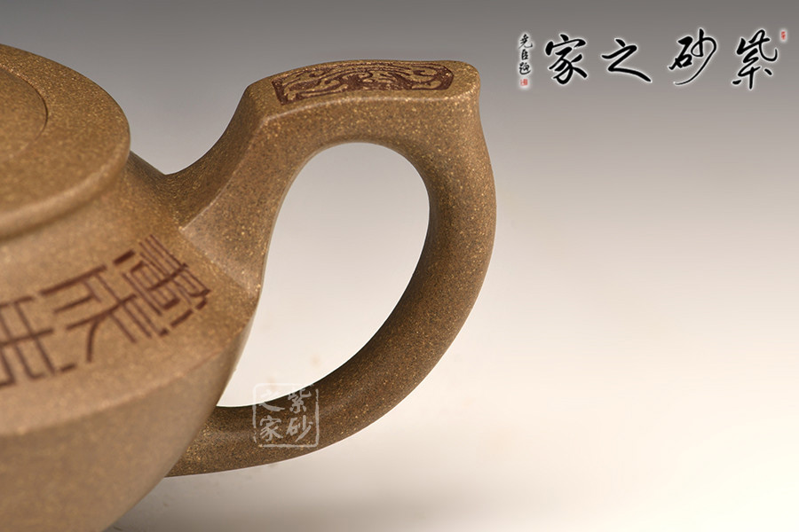 漢云壺為顧景舟原創(chuàng)壺式,造型周正嚴(yán)謹(jǐn),氣勢穩(wěn)重挺秀,純以造型的優(yōu)美取勝。壺以圓形線條為主,肩部凸起線條,延伸至壺嘴,與把手在視覺上保持了平衡,挺健舒展而穩(wěn)定,曲折中富有變化,柔美中帶有勁韌,老辣干練,蔚然可觀。壺做工精細(xì),三彎的壺嘴出水流暢,壺蓋嚴(yán)絲合縫,壺把上部平直,把握舒適。