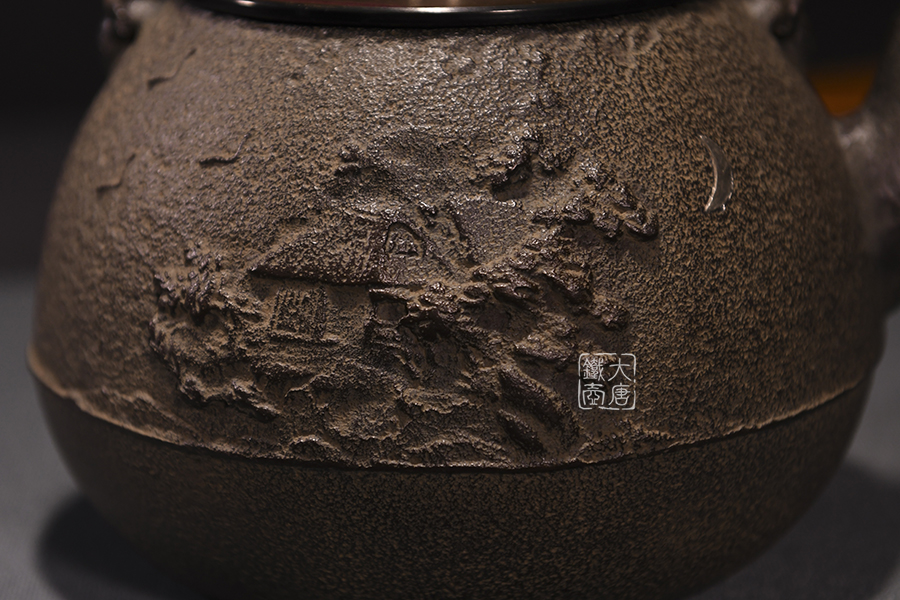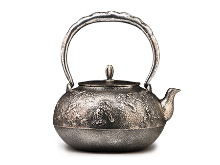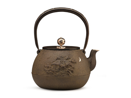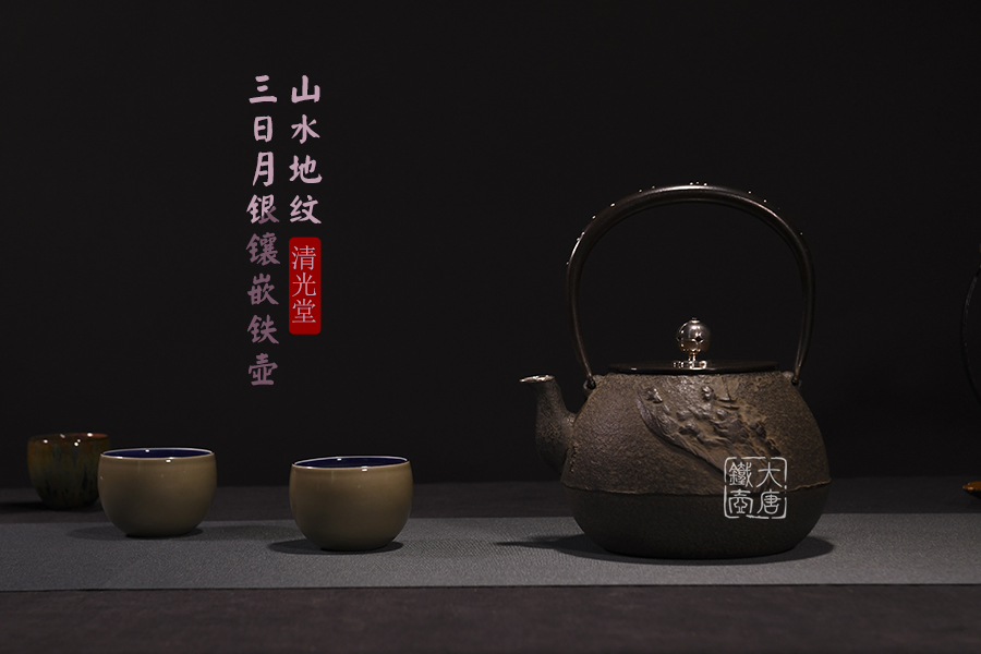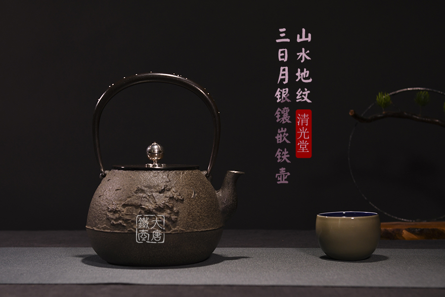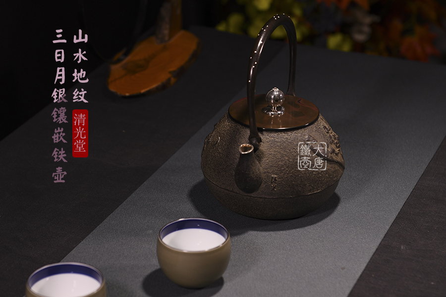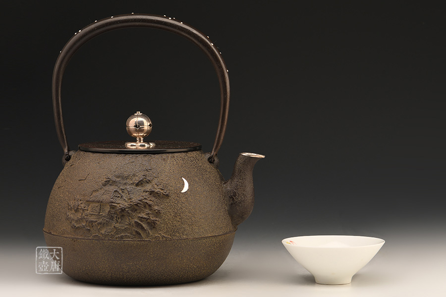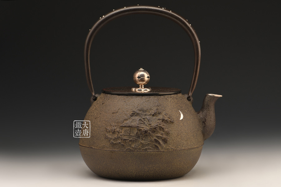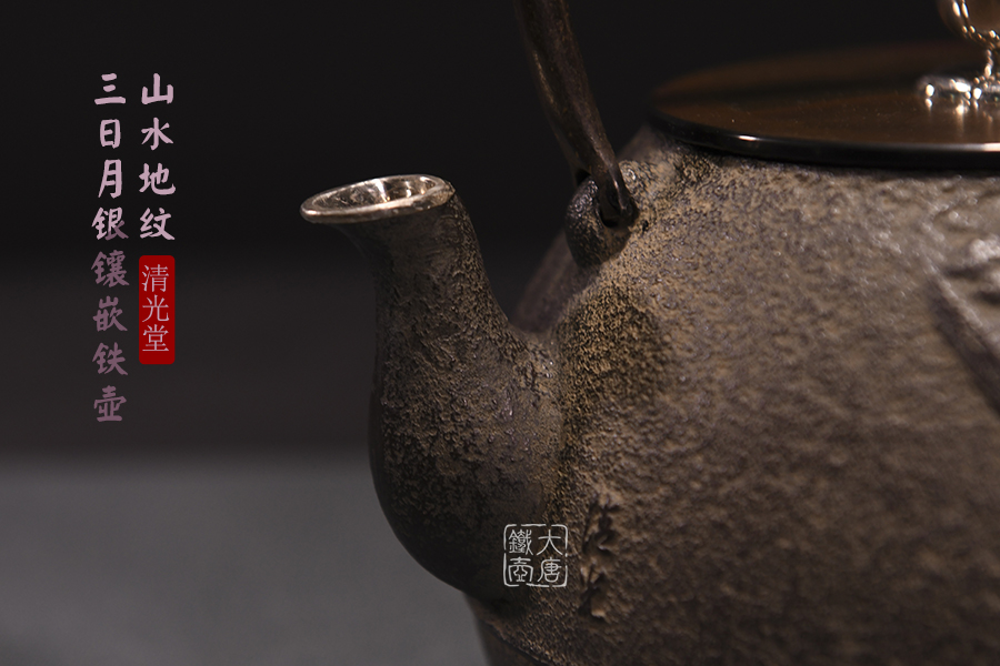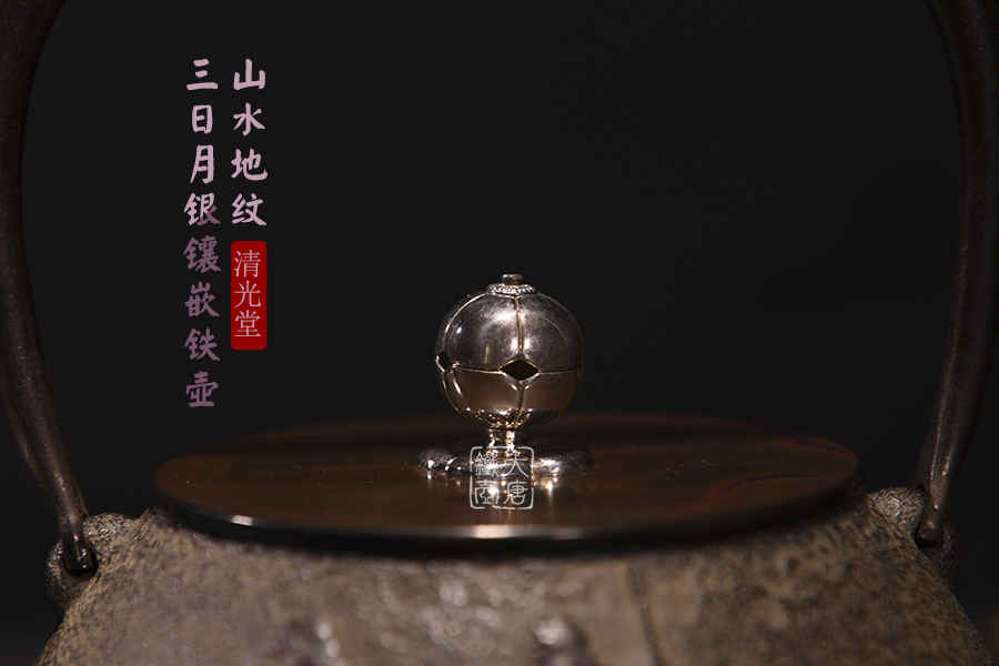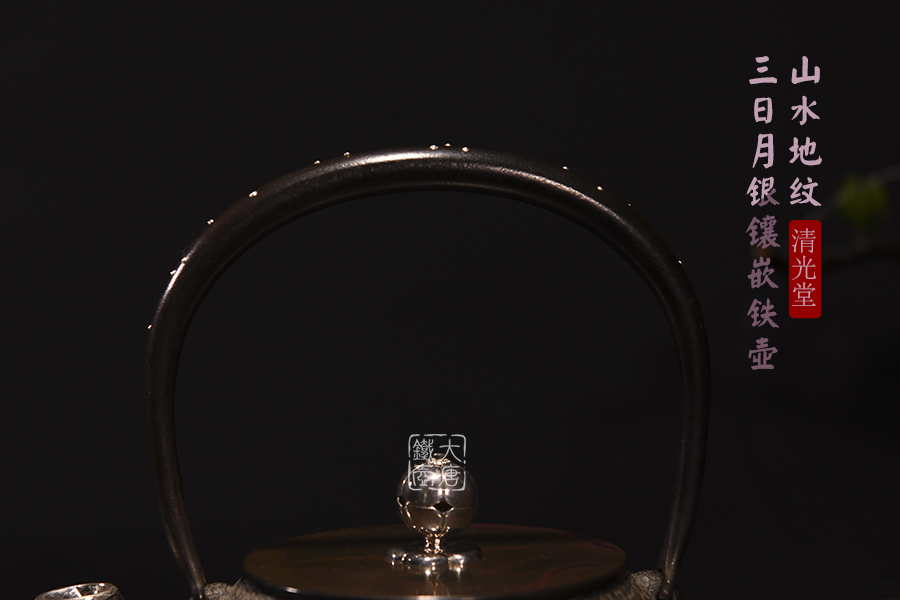 清光堂 山水地紋三日月銀鑲嵌鐵壺 [ 編號(hào):77498 ]