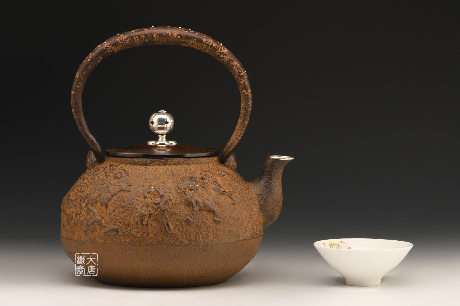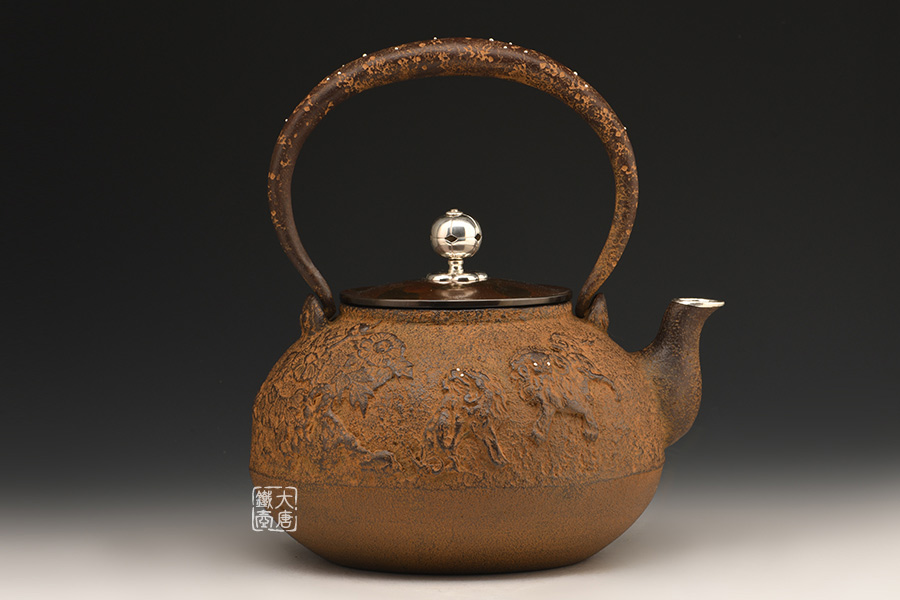清光堂 唐獅子牡丹中號鐵壺 [ 編號:77502 ]