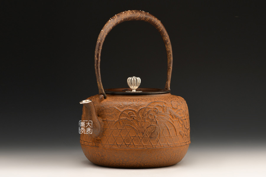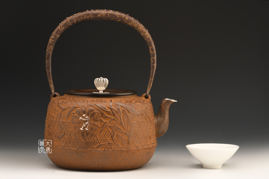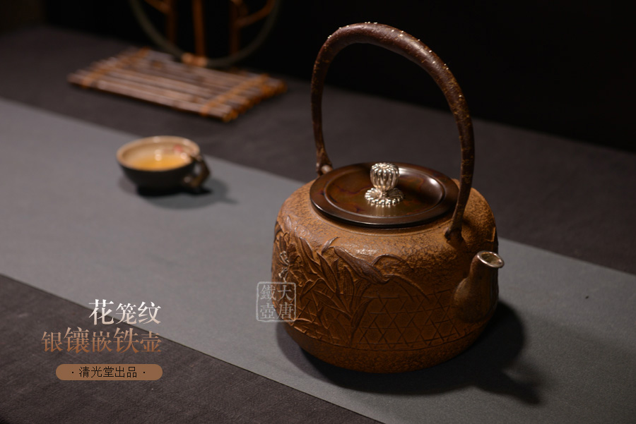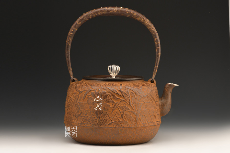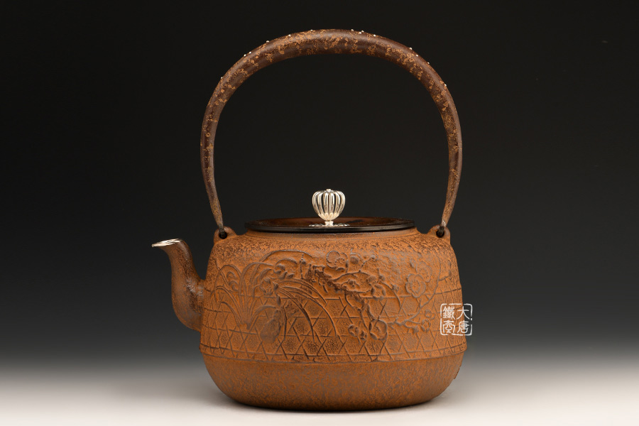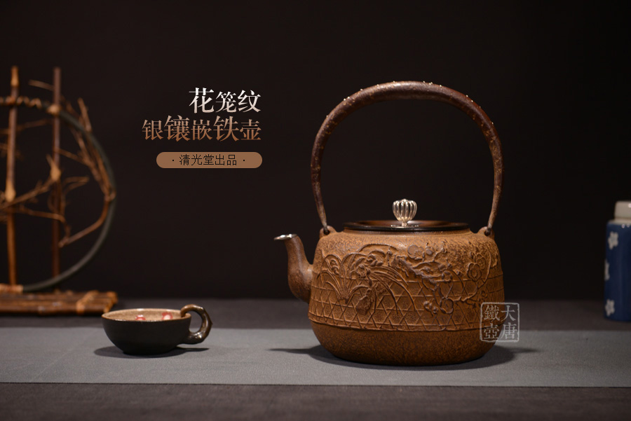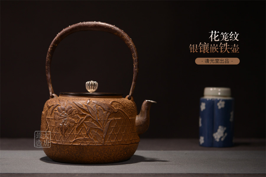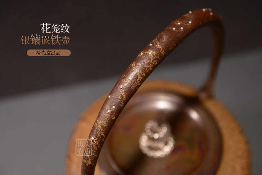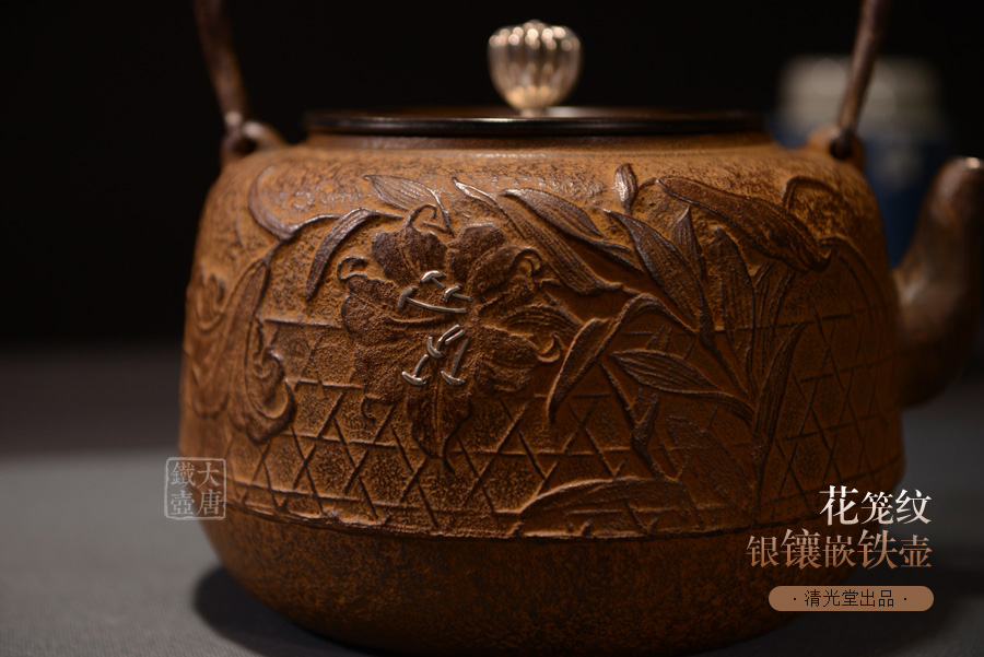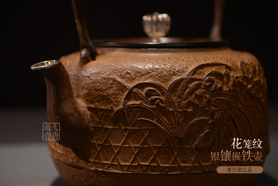 清光堂 花籠紋銀鑲嵌鐵壺 [ 編號:77505 ]