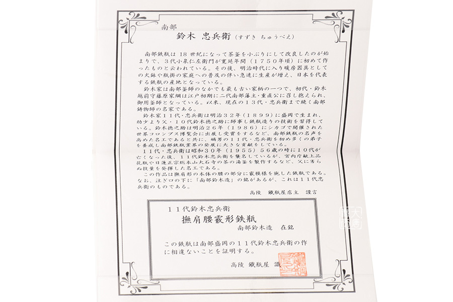 鈴木主善堂位于盛岡南大街,創(chuàng)立于1616年,是盛岡最古老的南部鐵器制造商之一。用代代相傳的鑄造技術(shù)做出來的鐵器倍受歡迎,來自全國的定單絡(luò)繹不絕。近年來又推出新系列的樣式,“要讓簡單實(shí)用的鐵瓶表現(xiàn)出美的感覺”12代鈴木傳人一直保持并發(fā)揚(yáng)著這樣的信念。