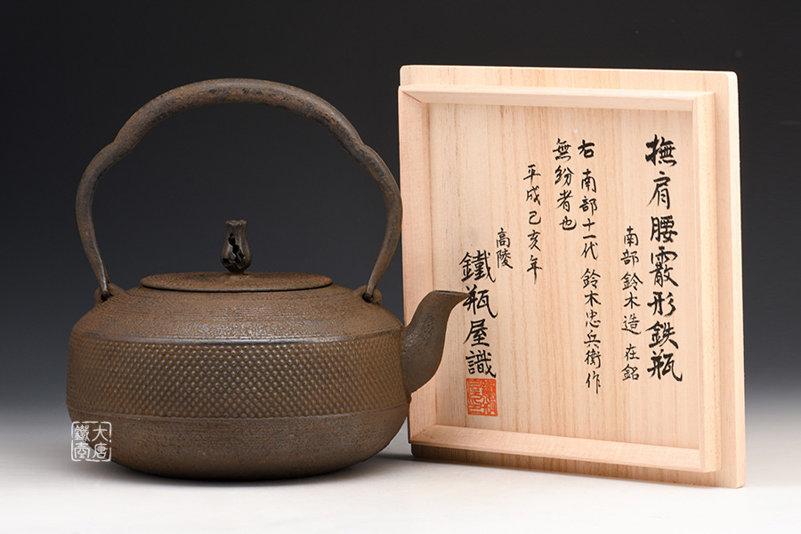 鈴木主善堂 11代鈴木忠兵衛(wèi)作撫肩腰霰紋老鐵壺 [ 編號(hào):77508 ]